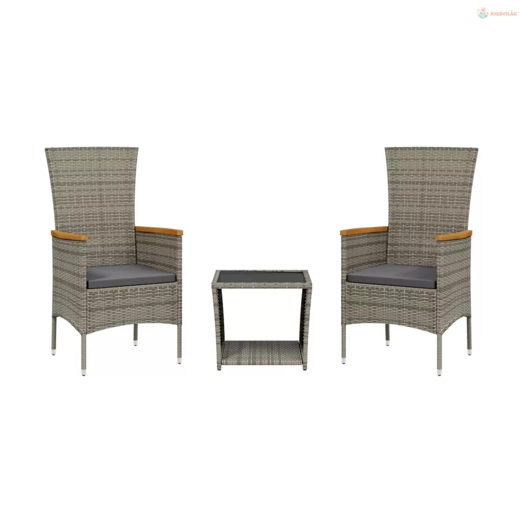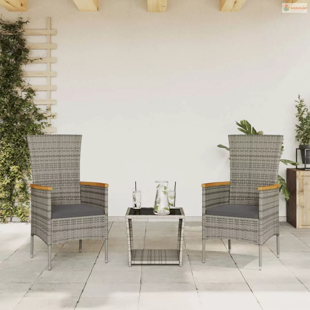 3 részes szürke polyrattan kerti étkezőgarnitúra párnával