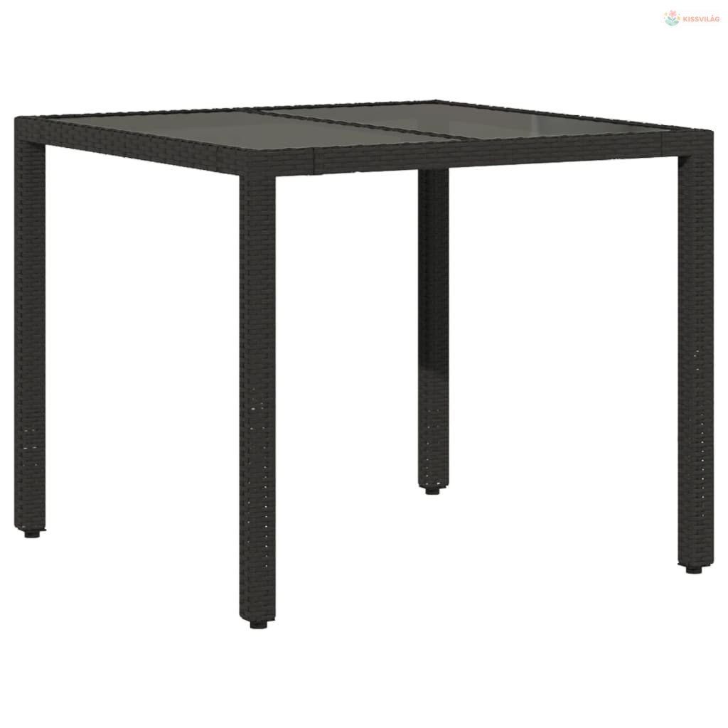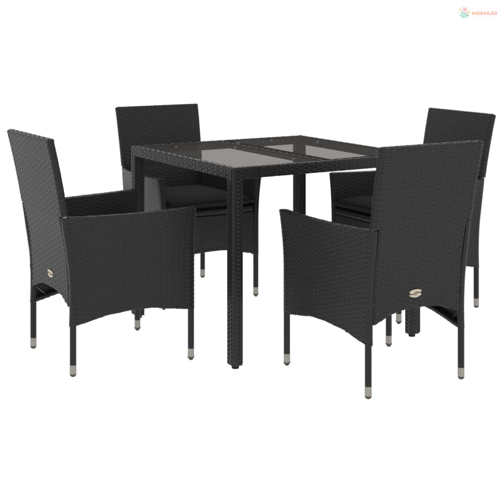 5 részes fekete polyrattan/üveg kerti étkezőgarnitúra párnákkal