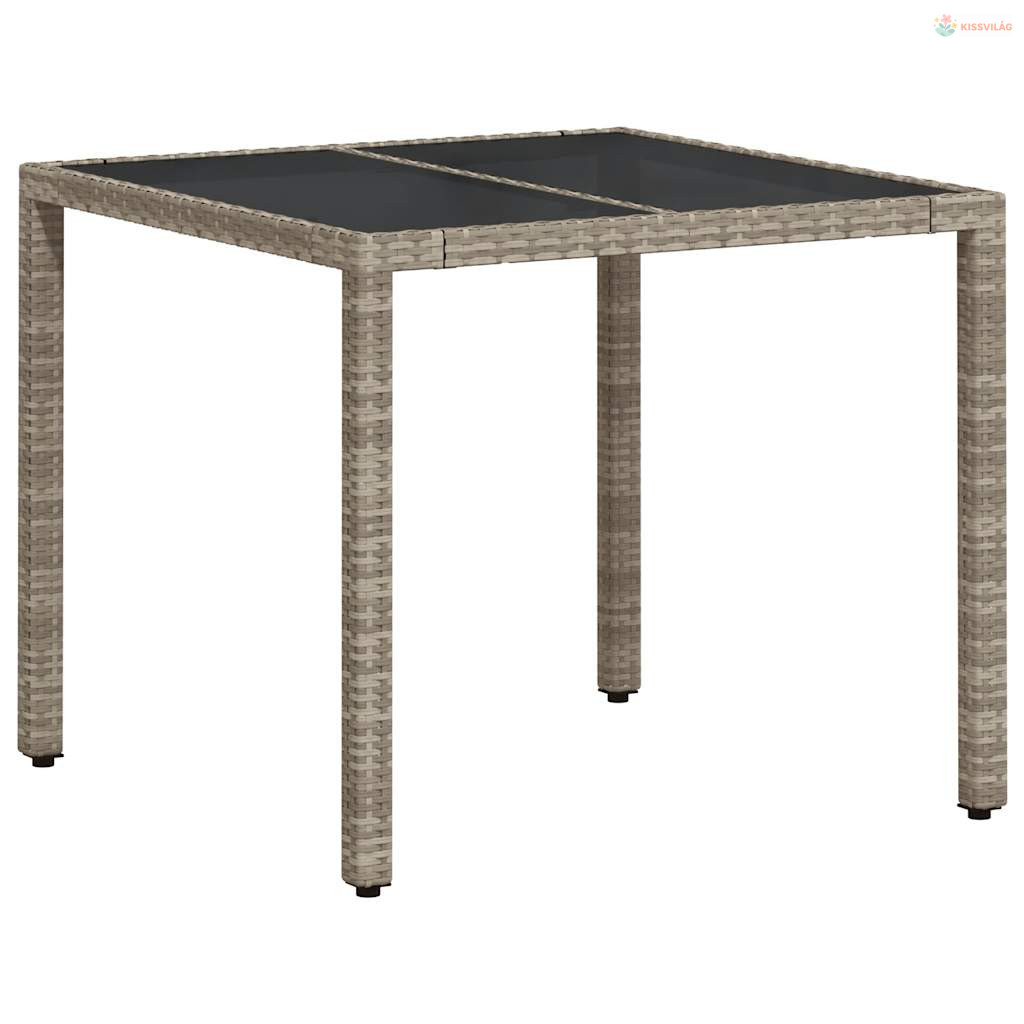 3 részes szürke polyrattan/üveg kerti étkezőgarnitúra párnával