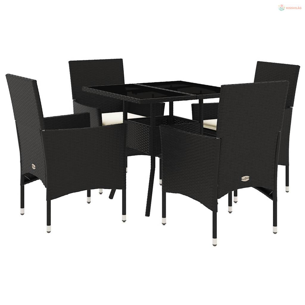 5 részes fekete polyrattan/üveg kerti étkezőgarnitúra párnákkal