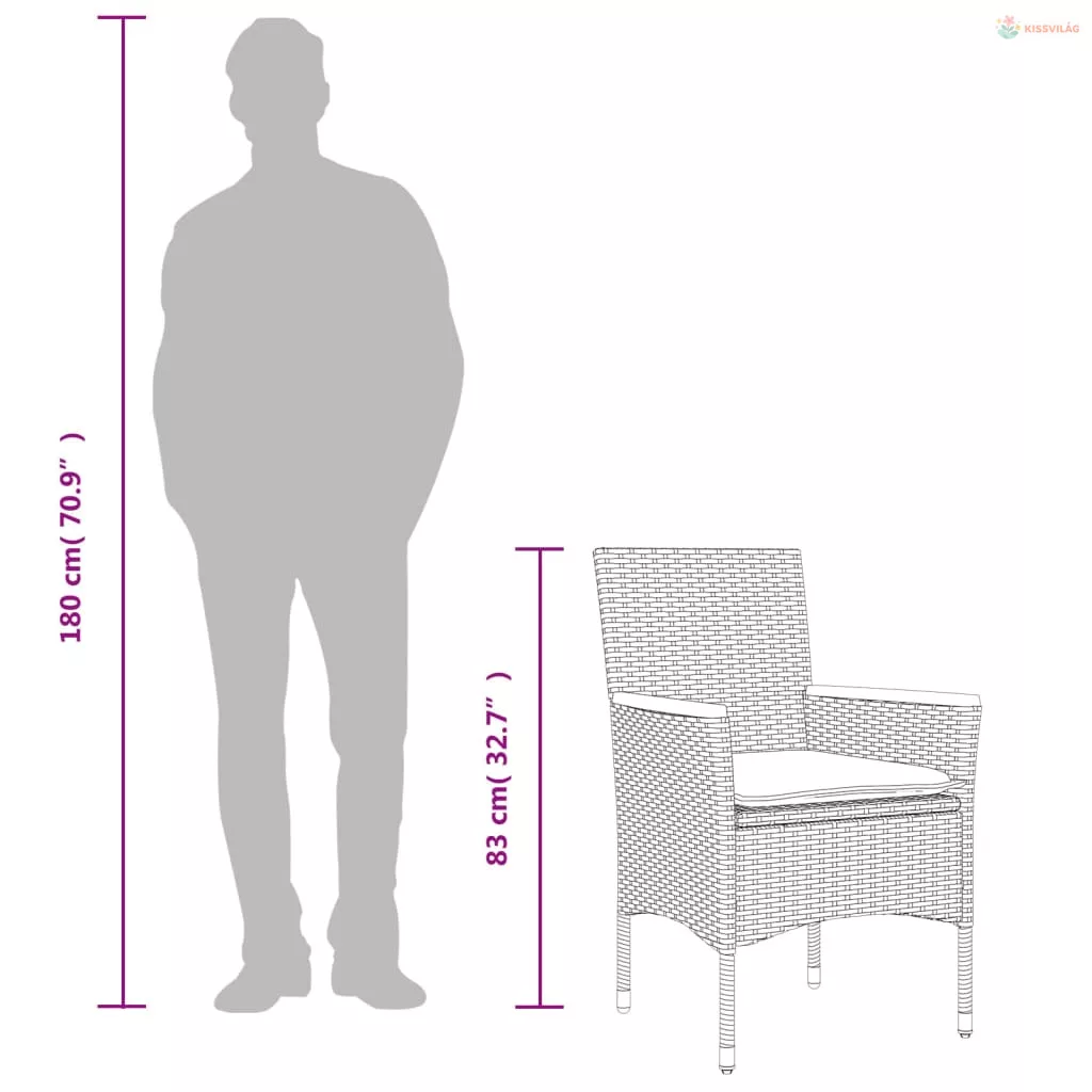 • Anyag: polietilén rattan, porszórt acél, tömör akácfa olajos felületkezeléssel