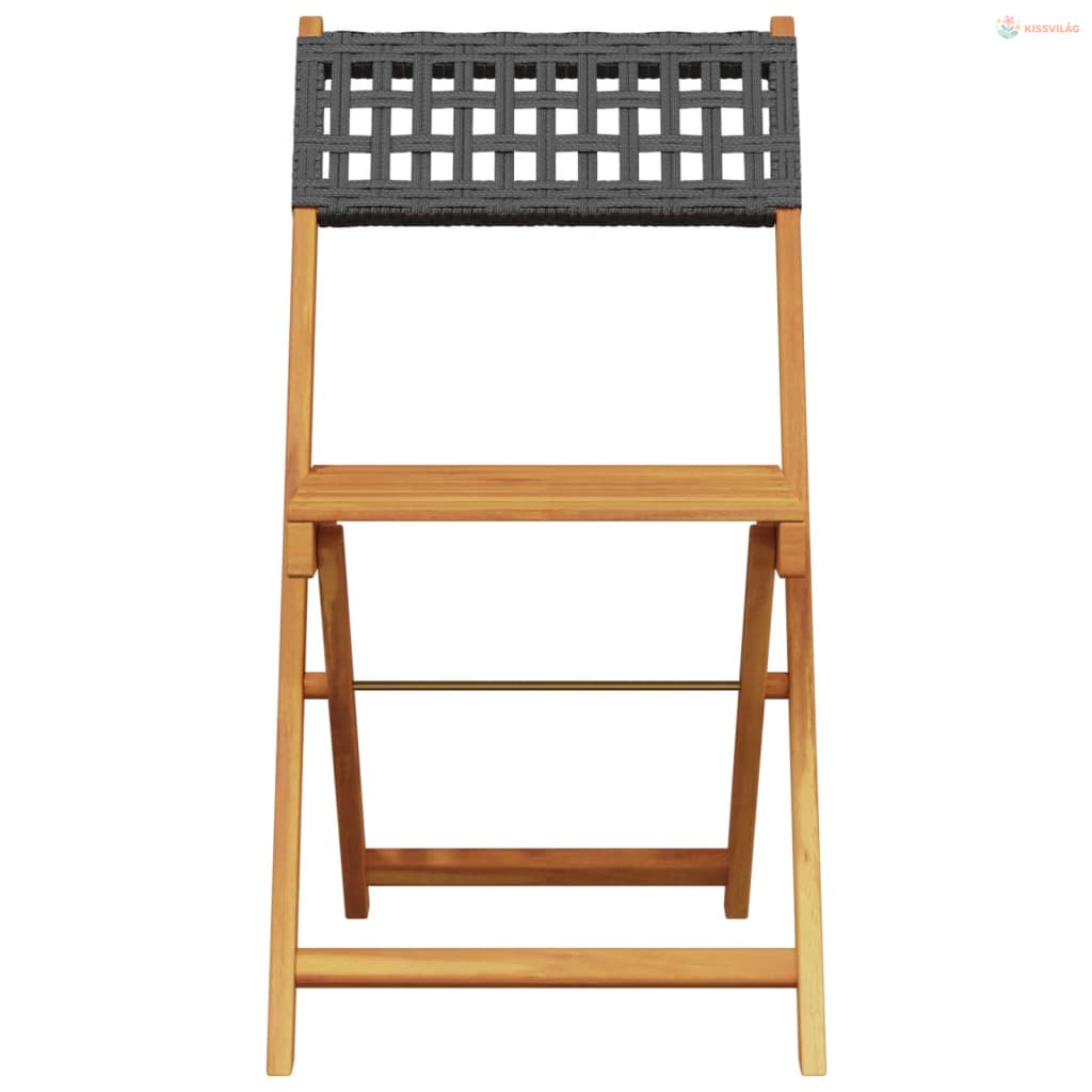 3 részes fekete polyrattan és tömör fa bisztrószett