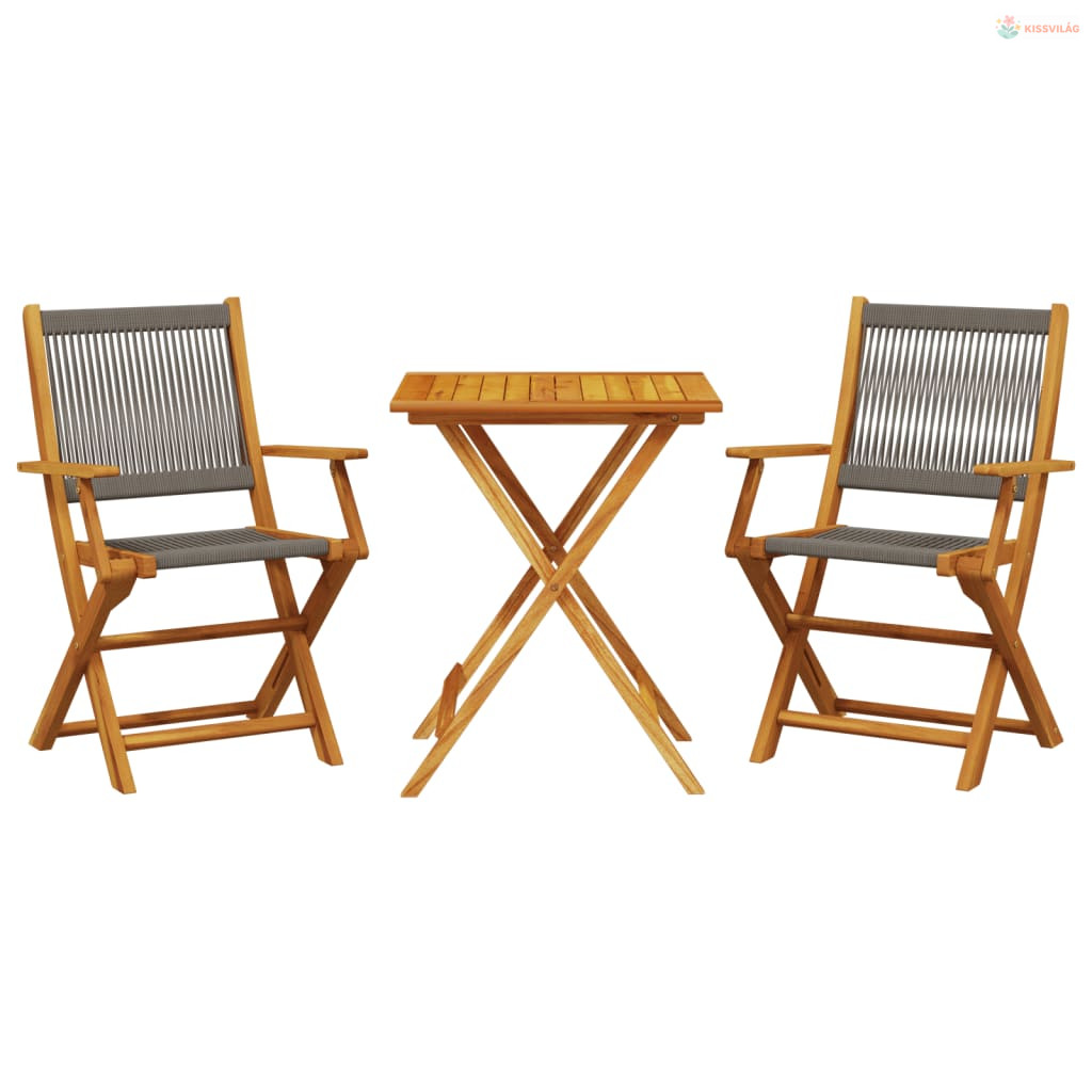 3 részes szürke polipropilén és tömör fa bisztrószett