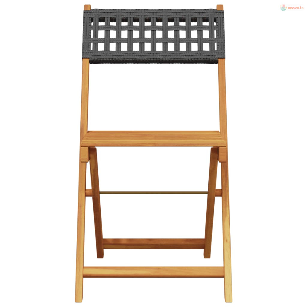 3 részes fekete polyrattan és tömör fa bisztrószett