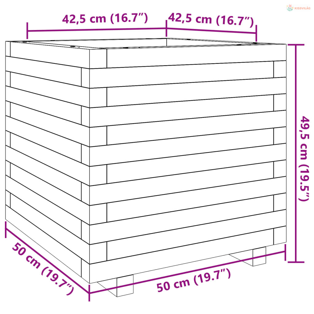 Viaszbarna tömör fenyőfa kerti virágláda 50 x 50 x 49,5 cm
