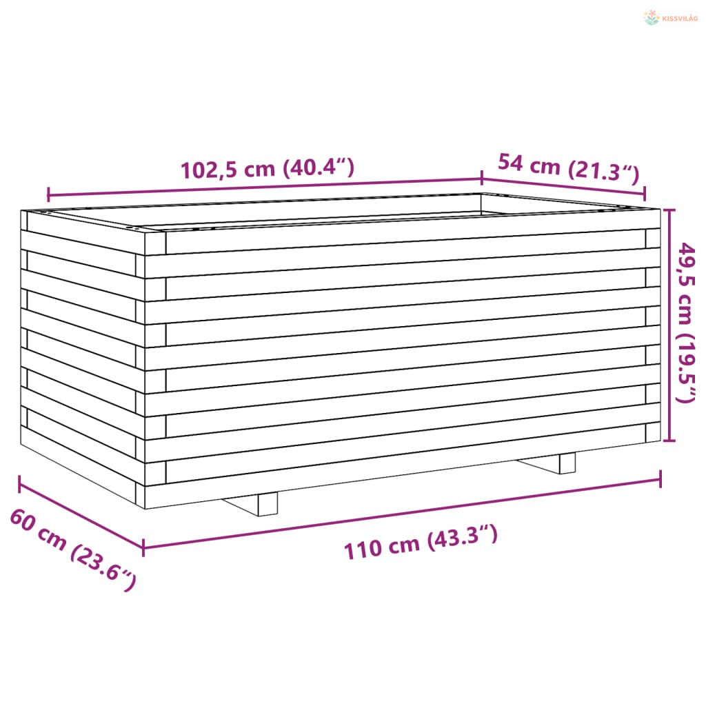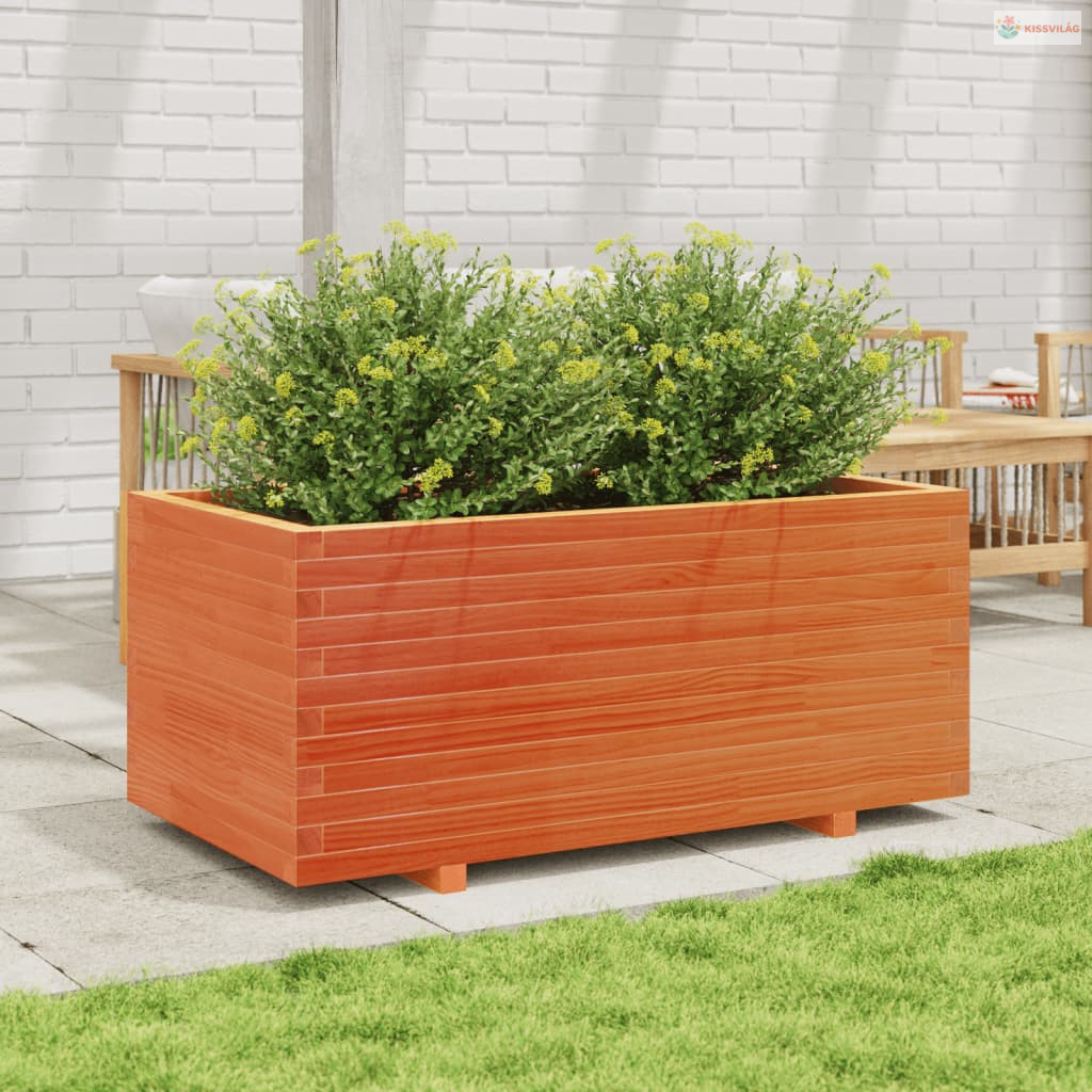 Viaszbarna tömör fenyőfa kerti virágláda 110 x 60 x 49,5 cm