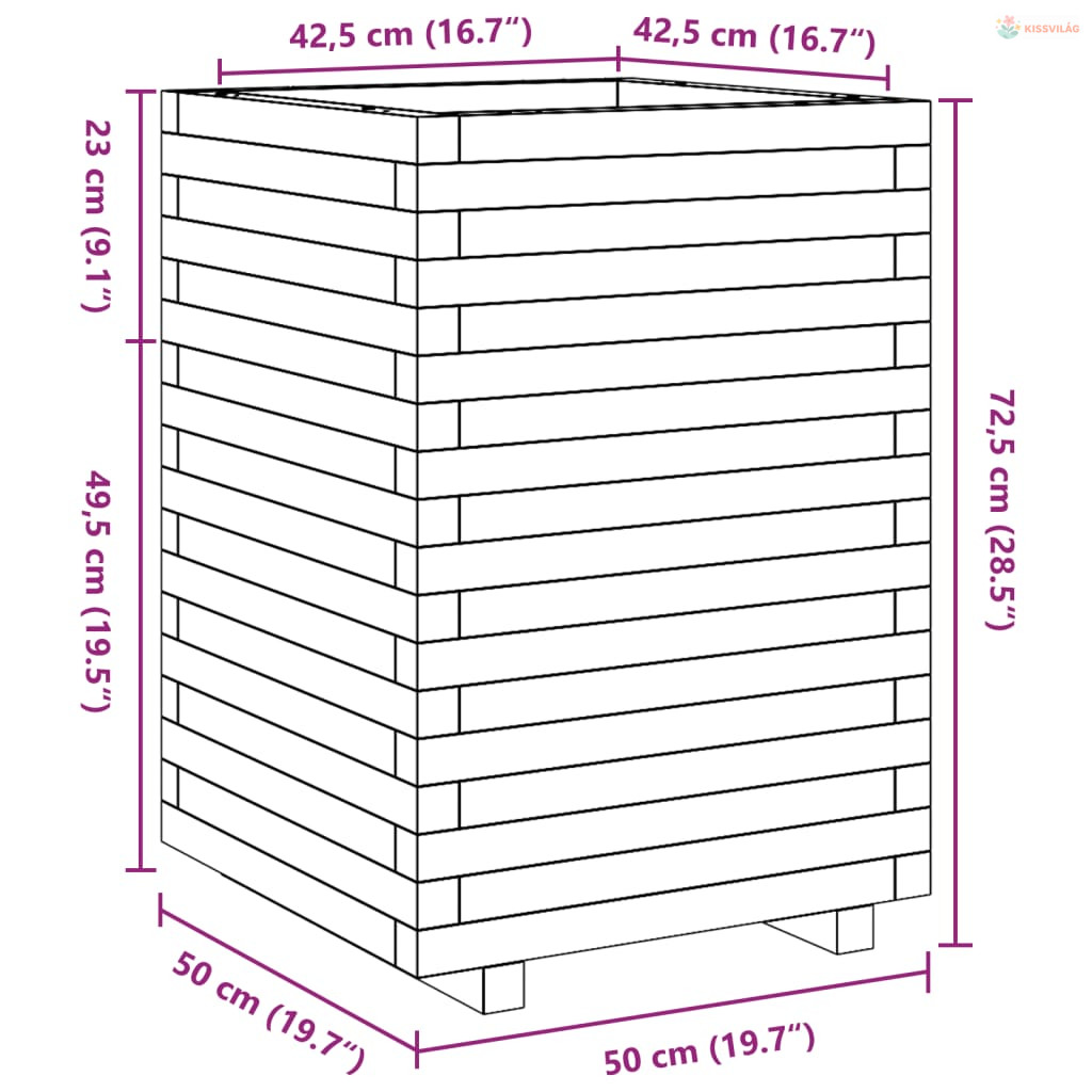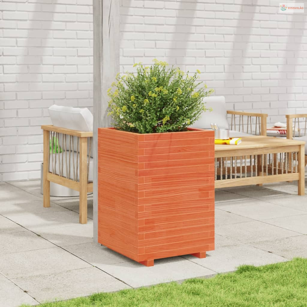 Viaszbarna tömör fenyőfa kerti virágláda 50 x 50 x 72,5 cm