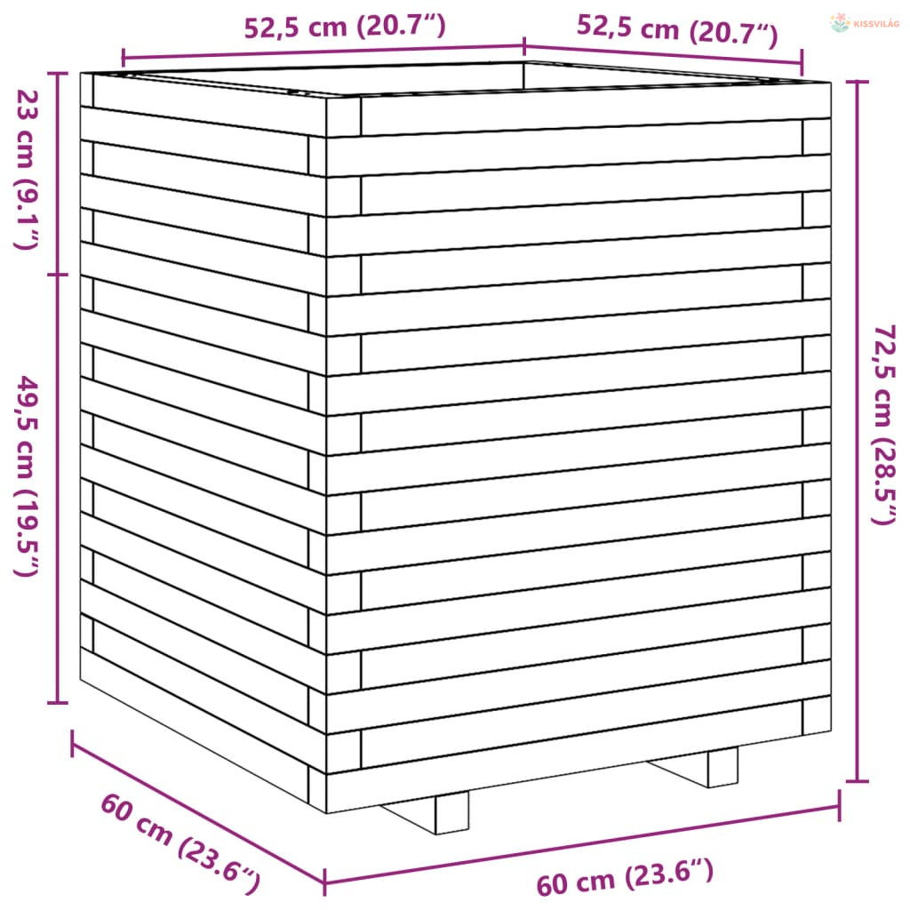 Viaszbarna tömör fenyőfa kerti virágláda 60 x 60 x 72,5 cm