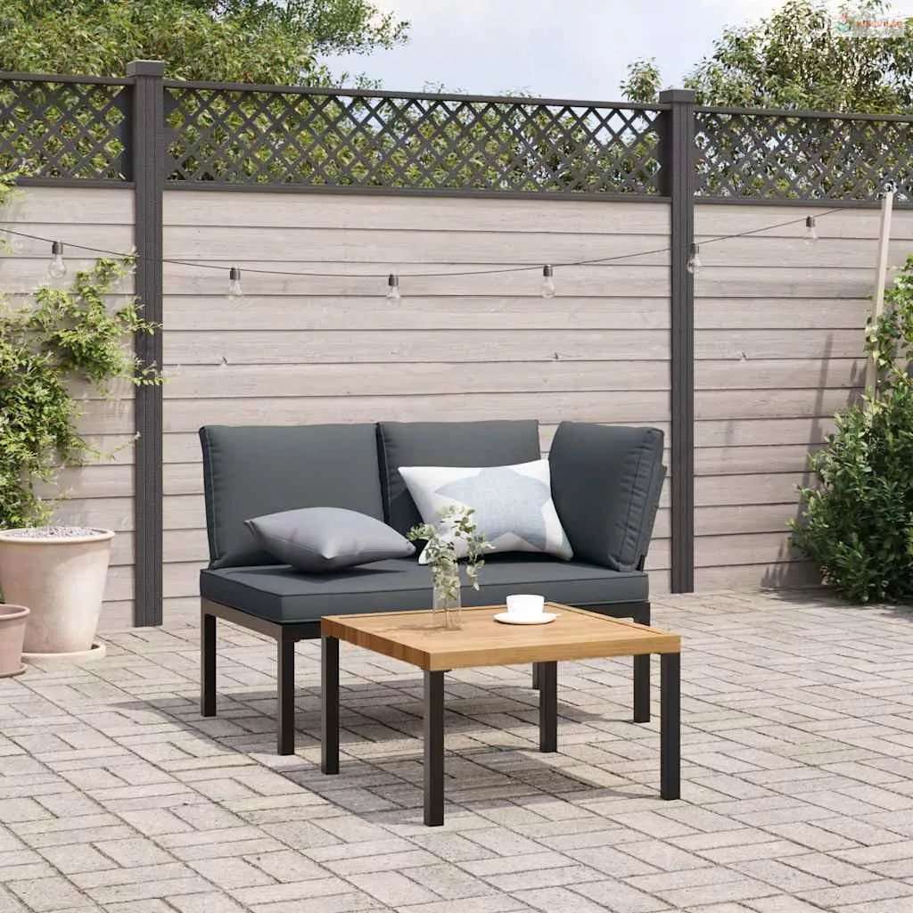 2 részes fekete alumínium kerti ülőgarnitúra párnával