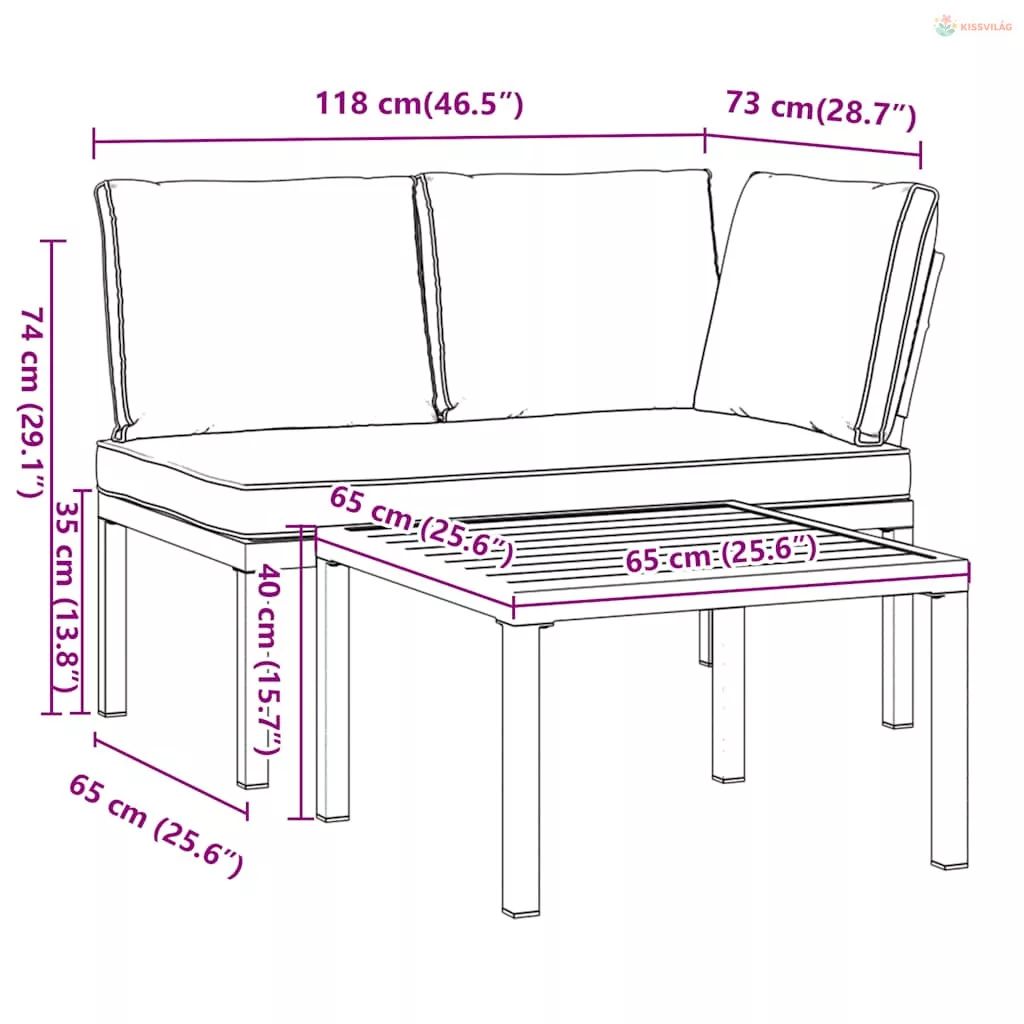 • Hosszú élettartamú és strapabíró: A kültéri ülőgarnitúra alumíniumszerkezetű, így tartós és hosszú élettartamú.