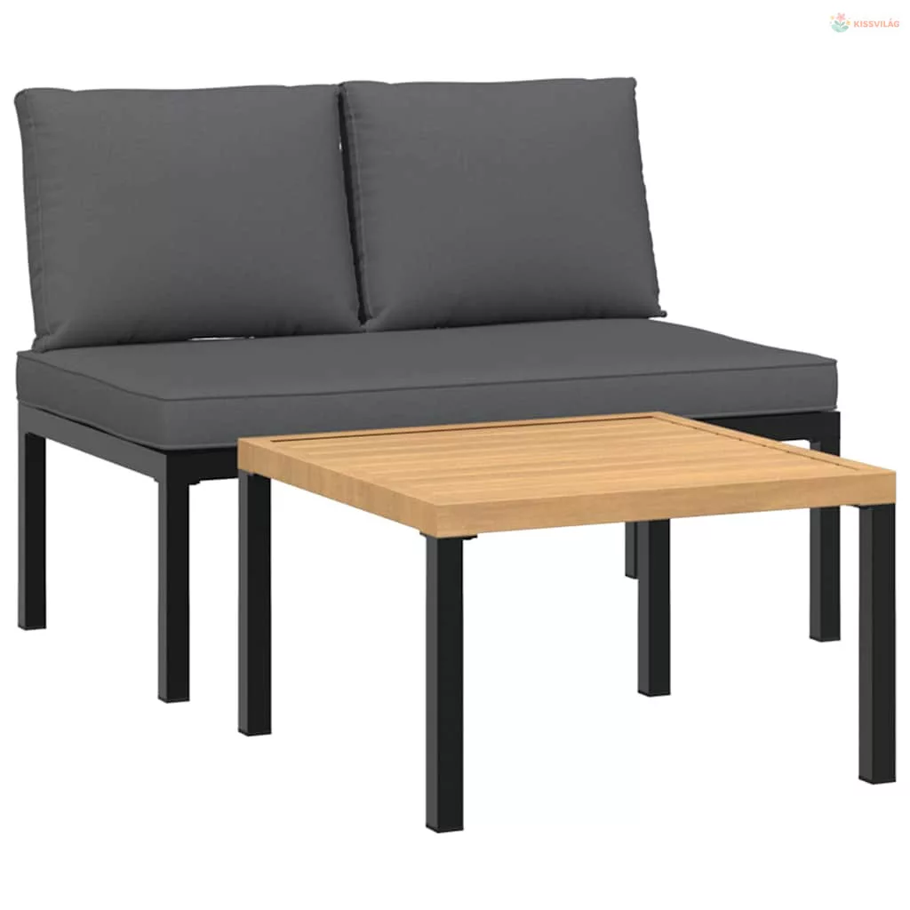 2 részes fekete alumínium kerti ülőgarnitúra párnával