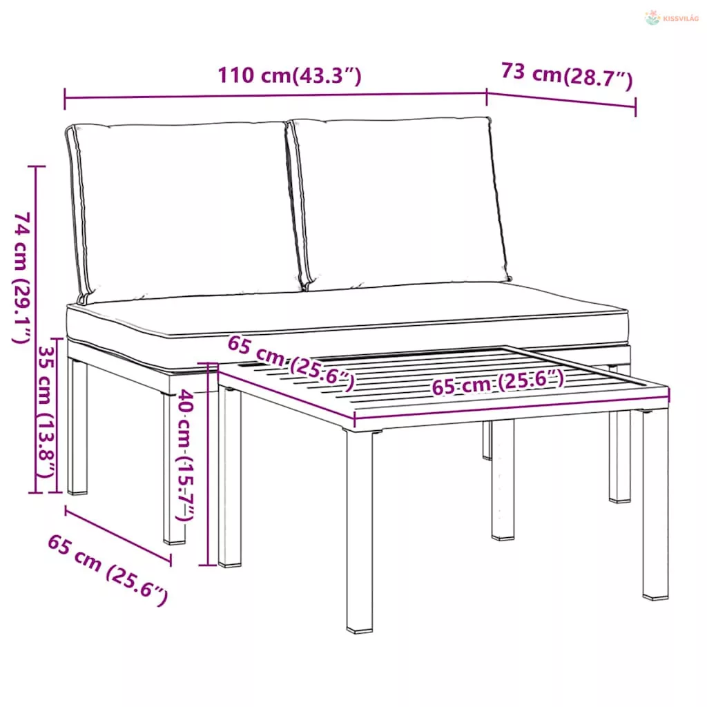 • Hosszú élettartamú és strapabíró: A kültéri ülőgarnitúra alumíniumszerkezetű, így tartós és hosszú élettartamú.