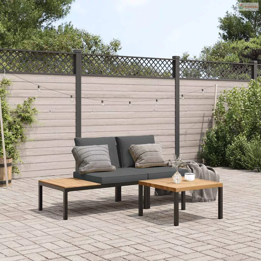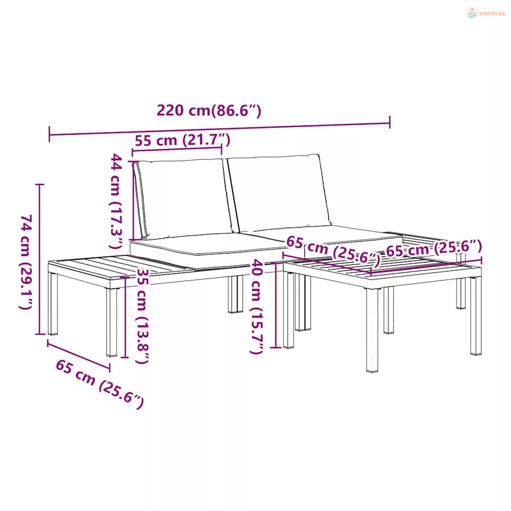 3 részes fekete alumínium kerti ülőgarnitúra párnával