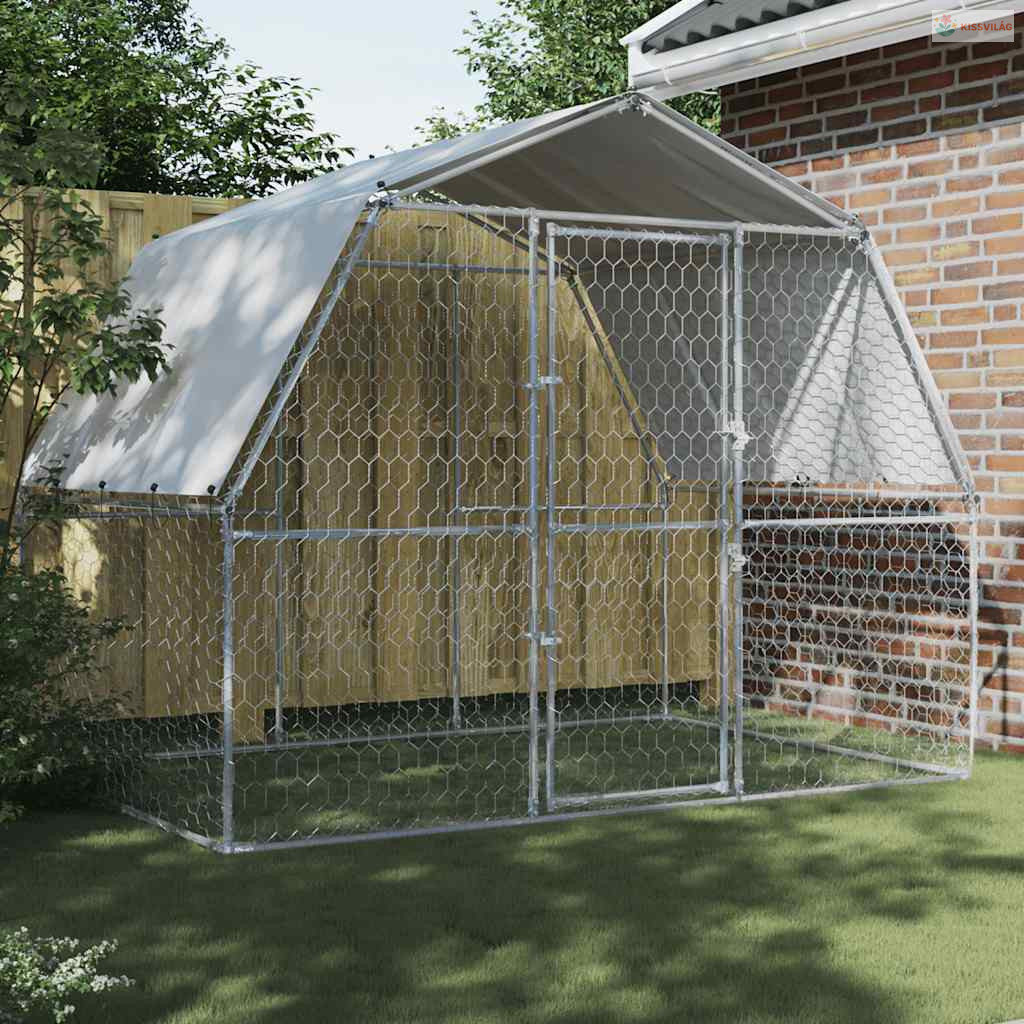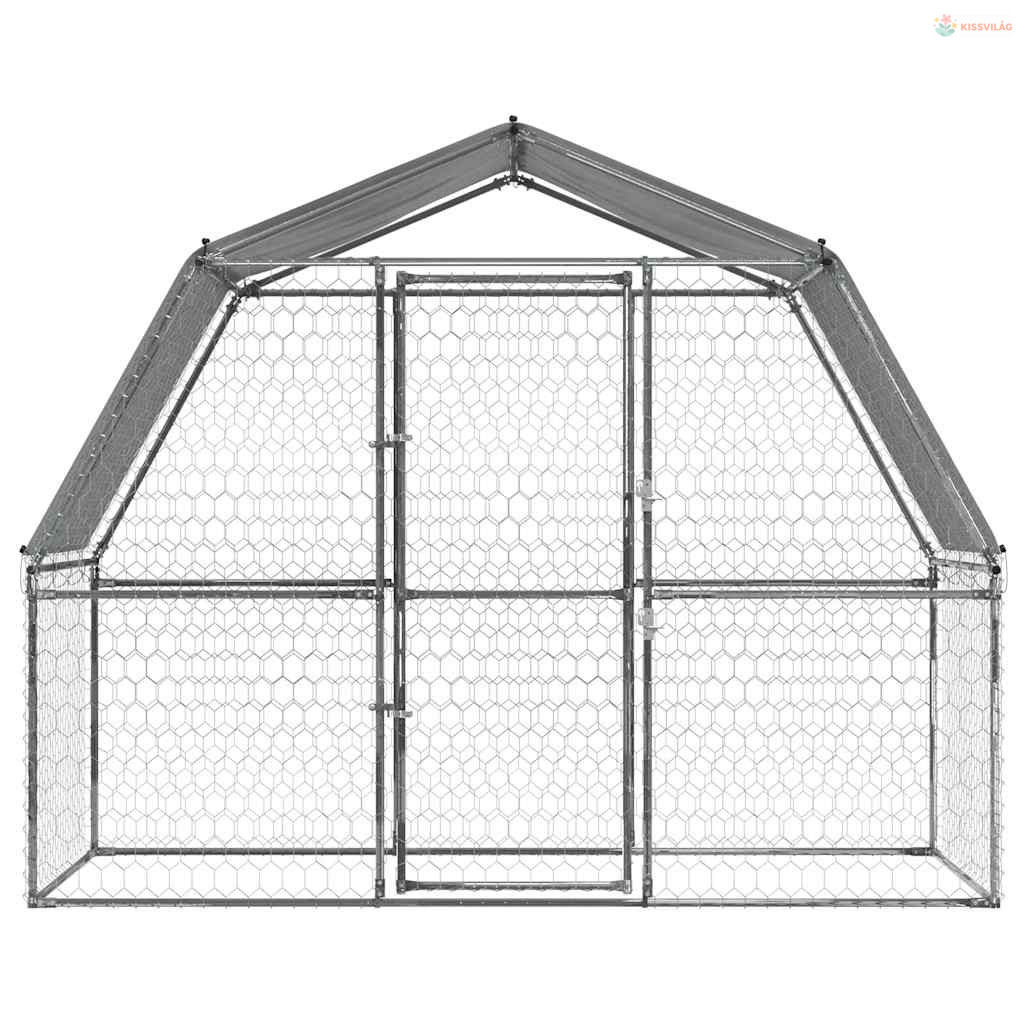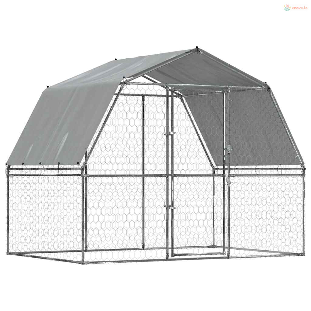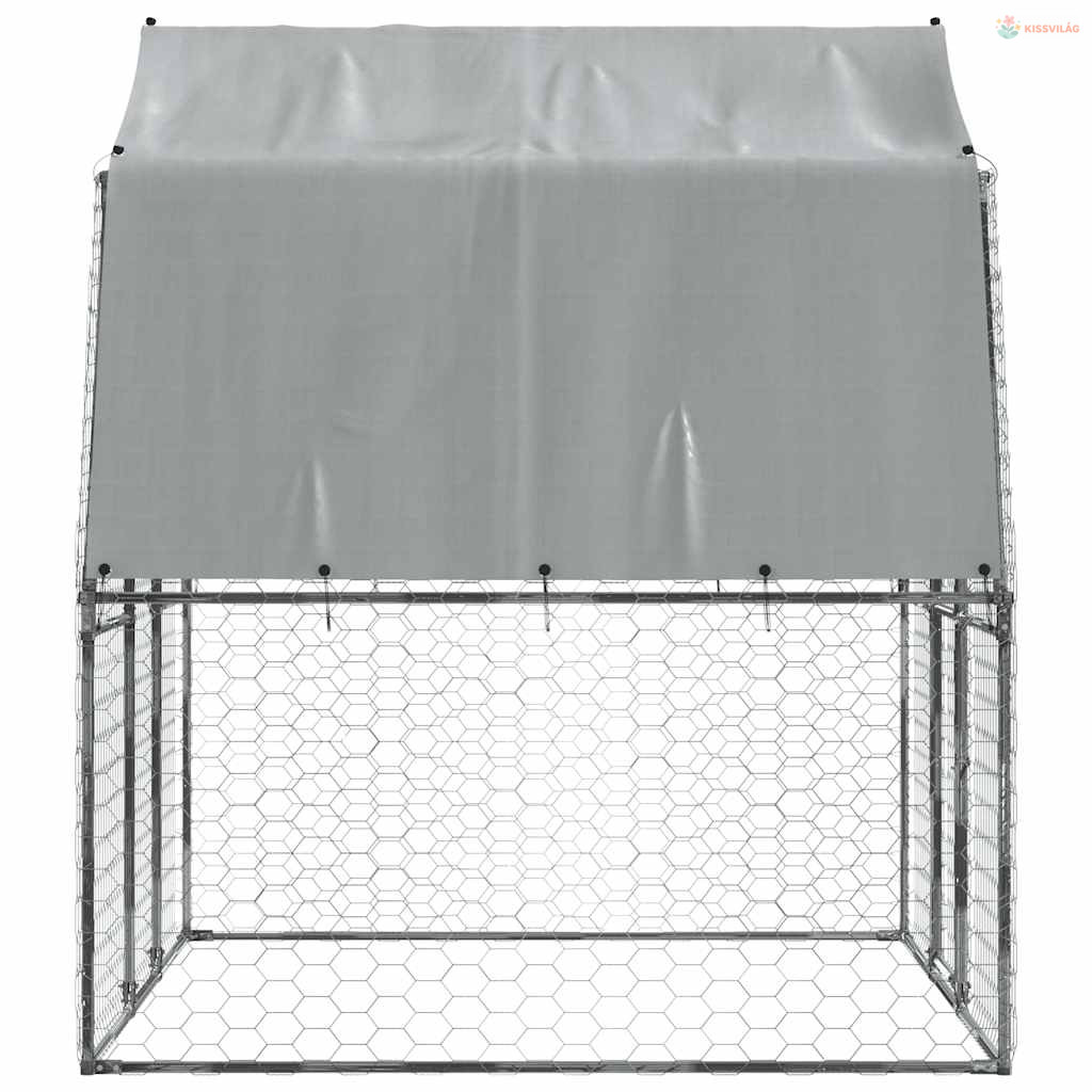 Ezüst horganyzott acél kutyaketrec tetővel és ajtóval