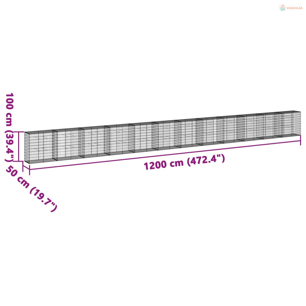Horganyzott vas gabion kosár fedéllel 1200 x 50 x 100 cm