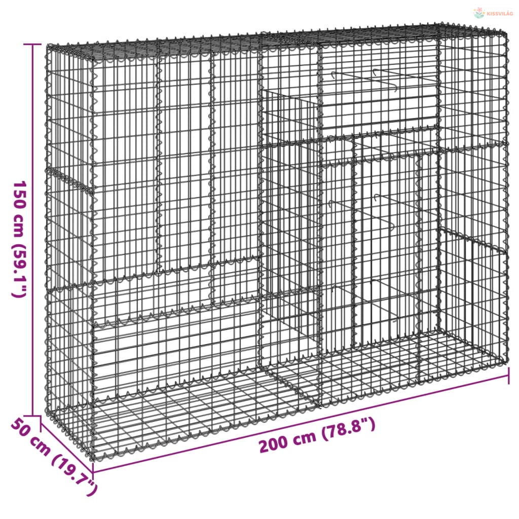 Horganyzott vas gabion kosár fedéllel 200 x 50 x 150 cm