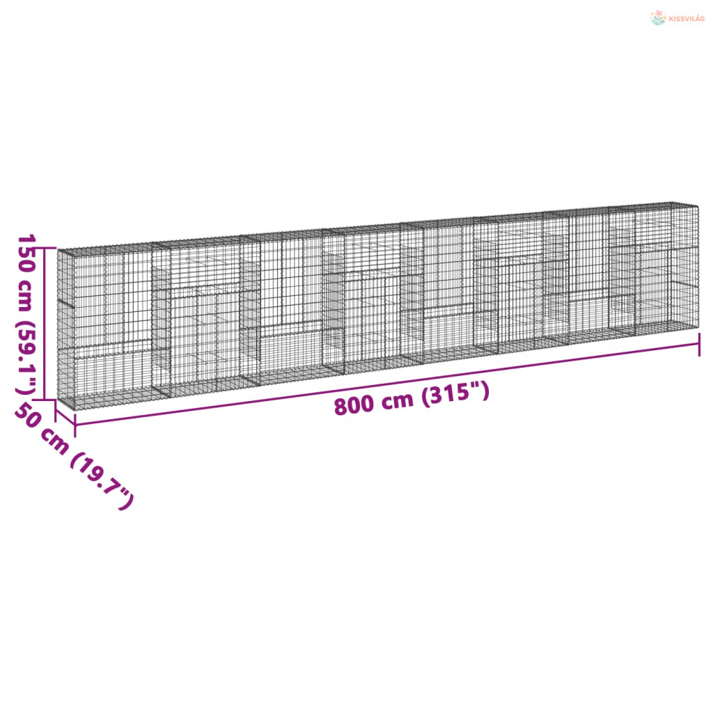 Horganyzott vas gabion kosár fedéllel 800 x 50 x 150 cm