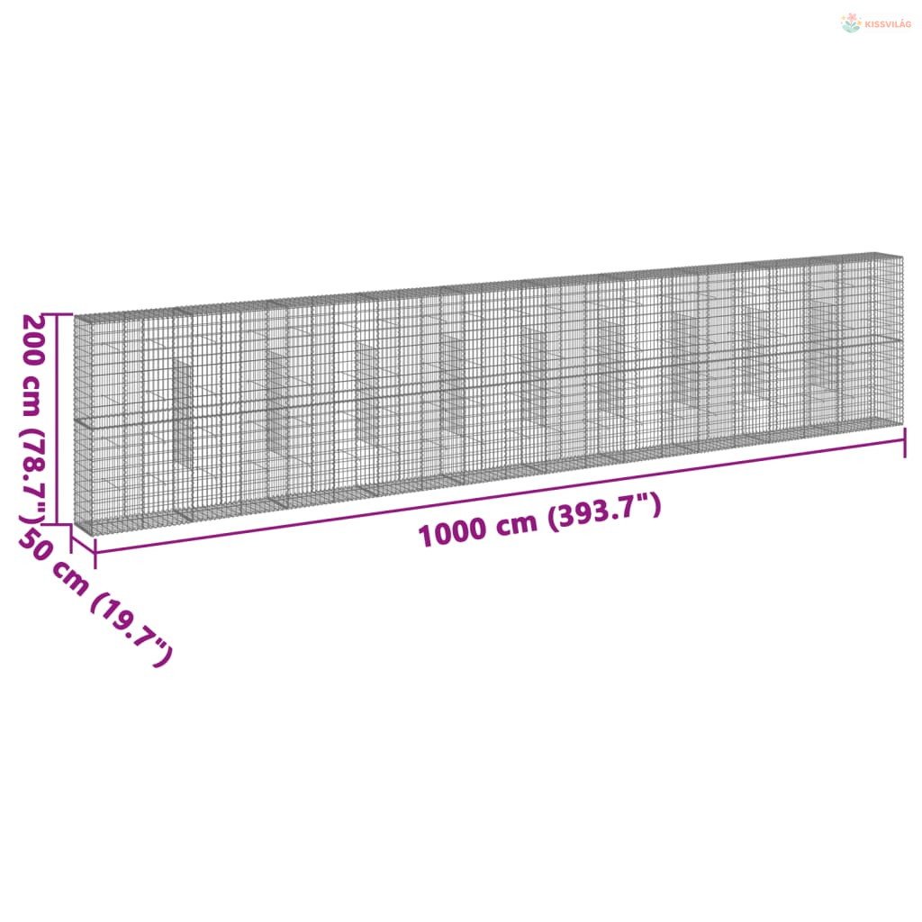 Horganyzott vas gabion kosár fedéllel 1000 x 50 x 200 cm
