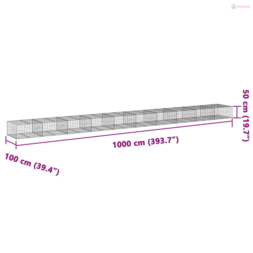 Horganyzott vas gabion kosár fedéllel 1000 x 100 x 50 cm