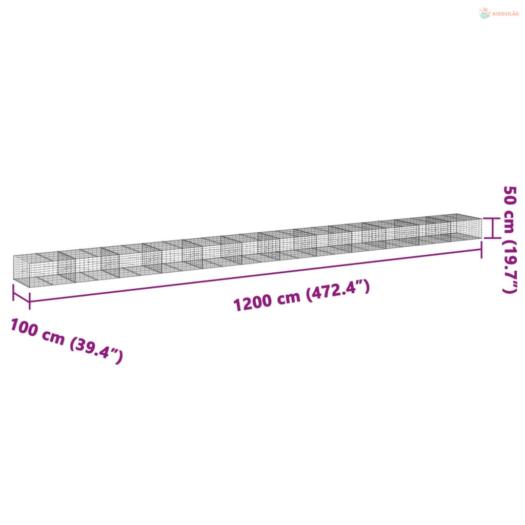 Horganyzott vas gabion kosár fedéllel 1200 x 100 x 50 cm