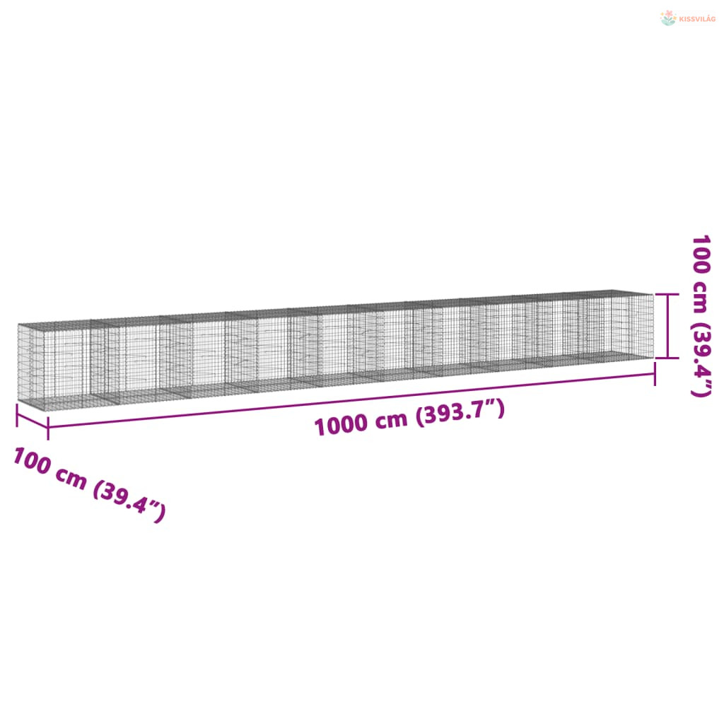 Horganyzott vas gabion kosár fedéllel 1000 x 100 x 100 cm