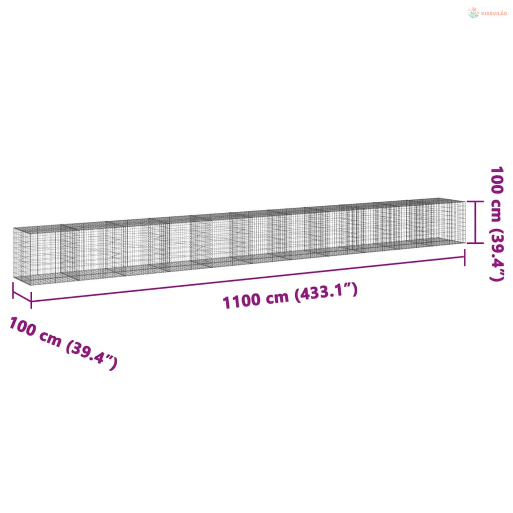 Horganyzott vas gabion kosár fedéllel 1100 x 100 x 100 cm