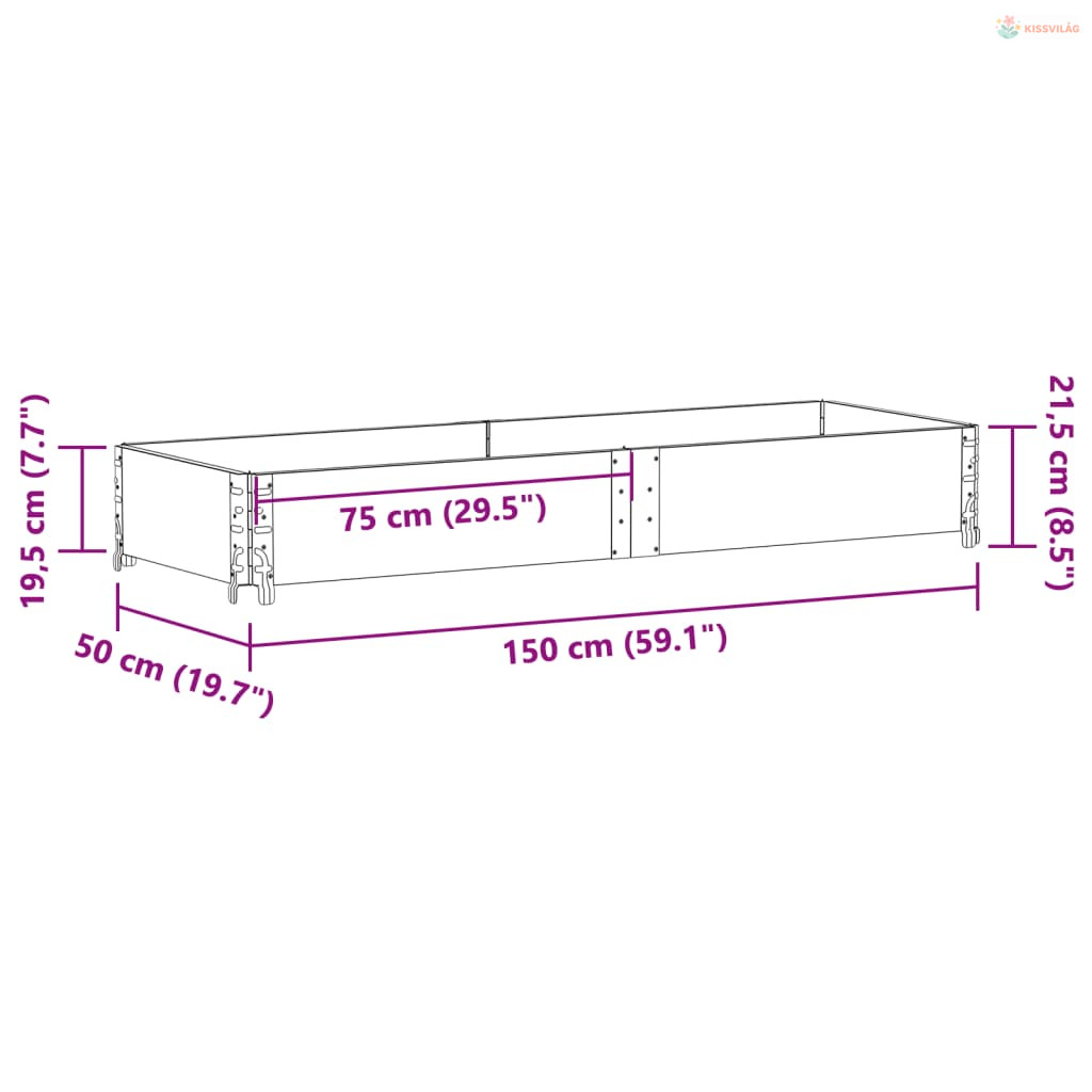 • Nyitott alj: A kerti magaságyás nyitott alja biztosítja a jó vízelvezetést és a növények légáteresztő képességét.