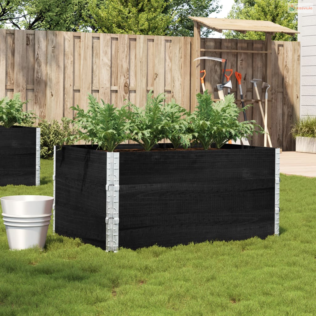 Fekete tömör fenyőfa kerti növénytartó 120 x 80 cm