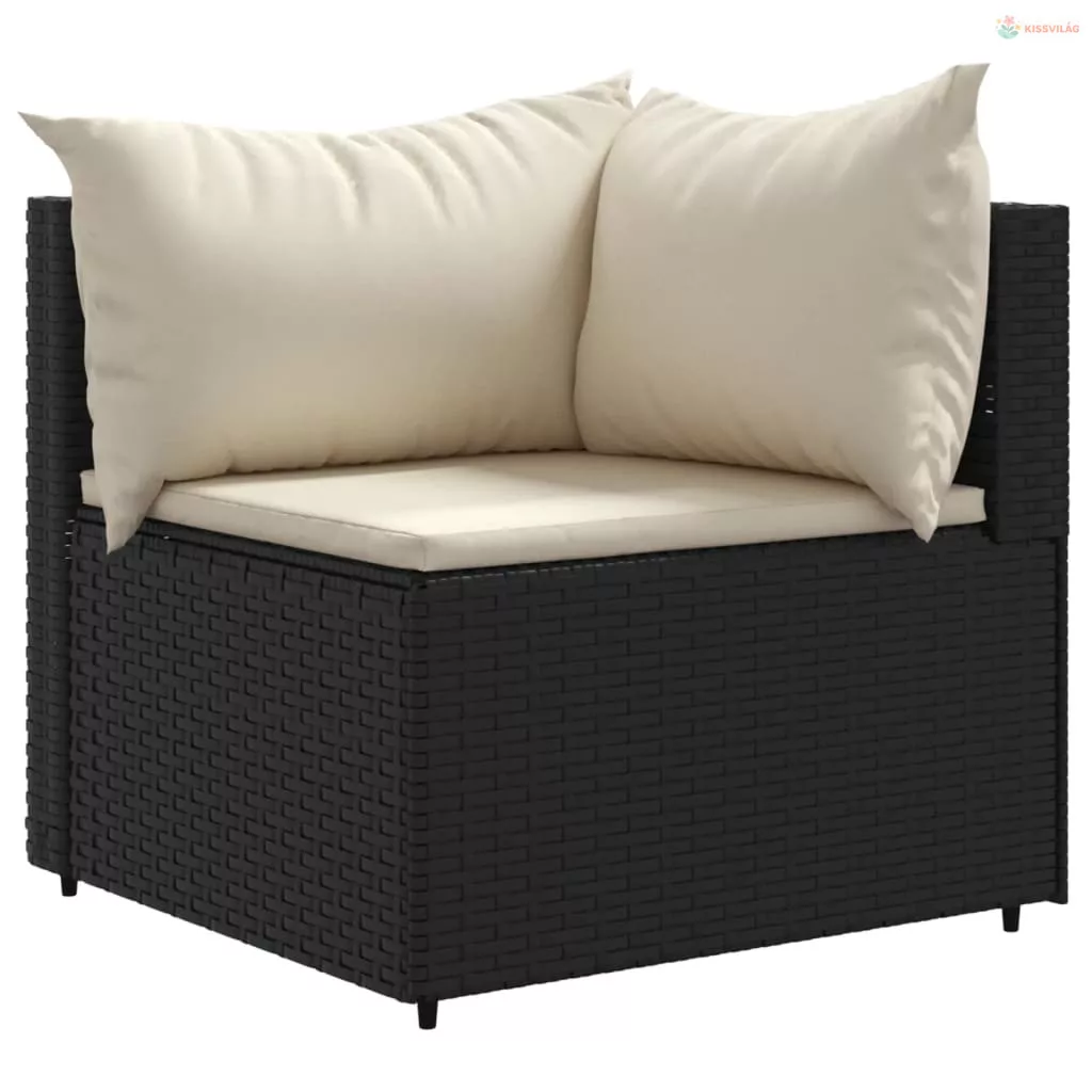 4 részes fekete polyrattan kerti ülőgarnitúra párnákkal