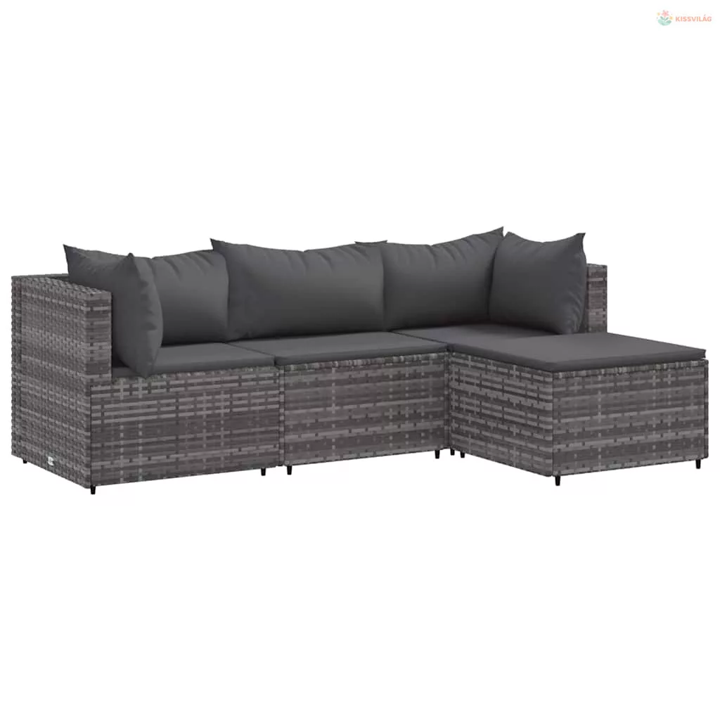 4 részes szürke polyrattan kerti ülőgarnitúra párnákkal