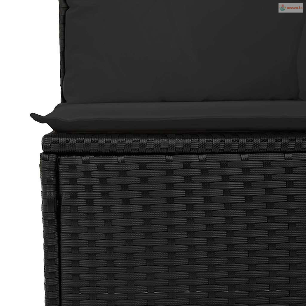 2 részes fekete polyrattan akácfa kerti ülőgarnitúra párnával