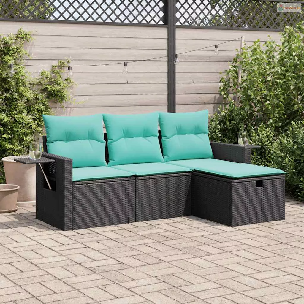 4 részes fekete polyrattan kerti ülőgarnitúra párnákkal