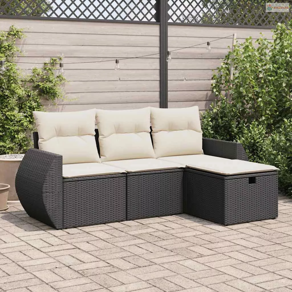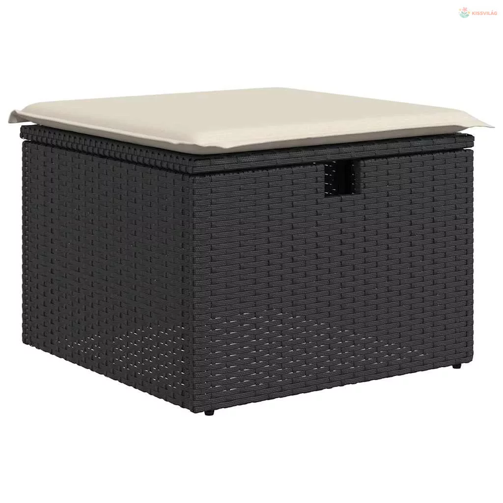 4 részes fekete polyrattan kerti ülőgarnitúra párnákkal