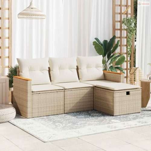 4 részes bézs polyrattan kerti ülőgarnitúra párnákkal