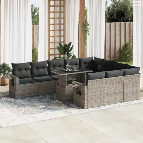 11 részes szürke polyrattan kerti ülőgarnitúra párnákkal
