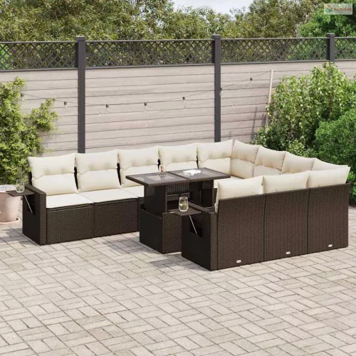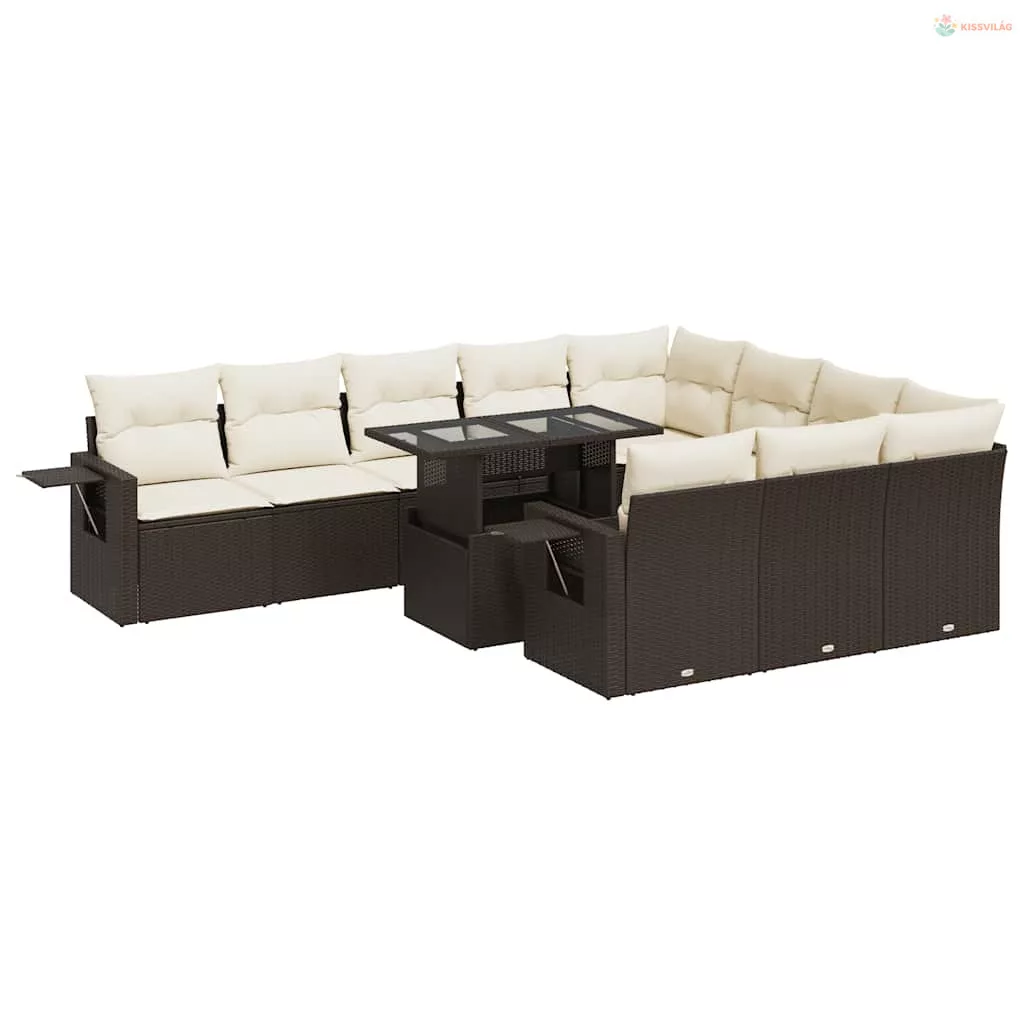 11 részes barna polyrattan kerti ülőgarnitúra párnákkal