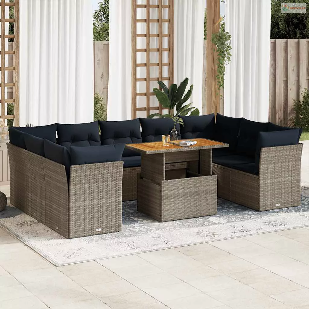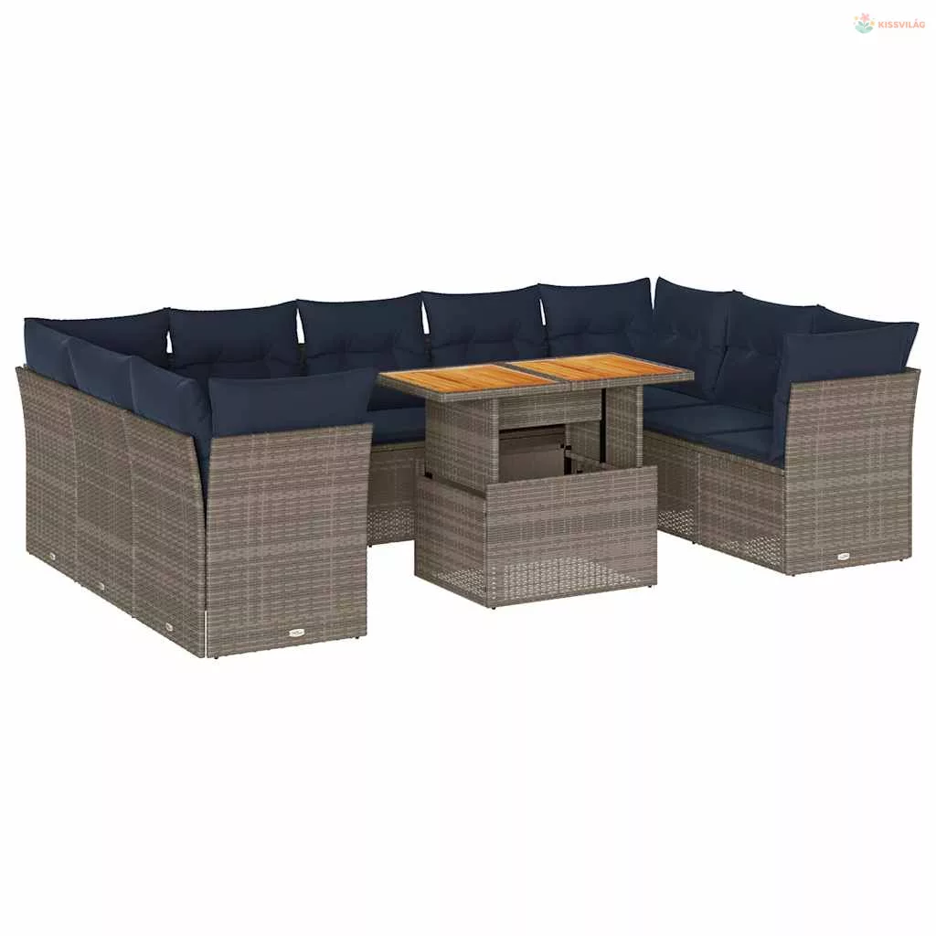 10 részes szürke polyrattan kerti ülőgarnitúra párnákkal