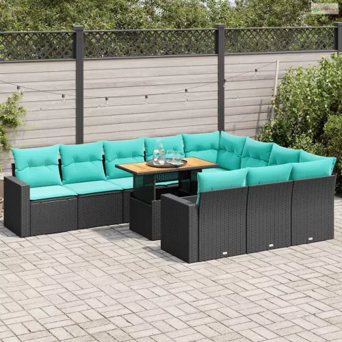 11 részes fekete polyrattan kerti ülőgarnitúra párnákkal
