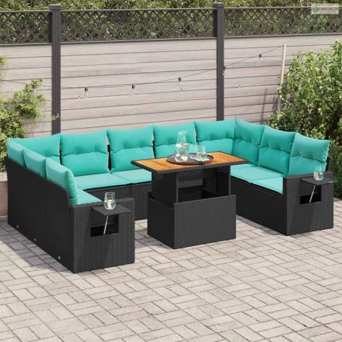 10 részes fekete polyrattan kerti ülőgarnitúra párnákkal