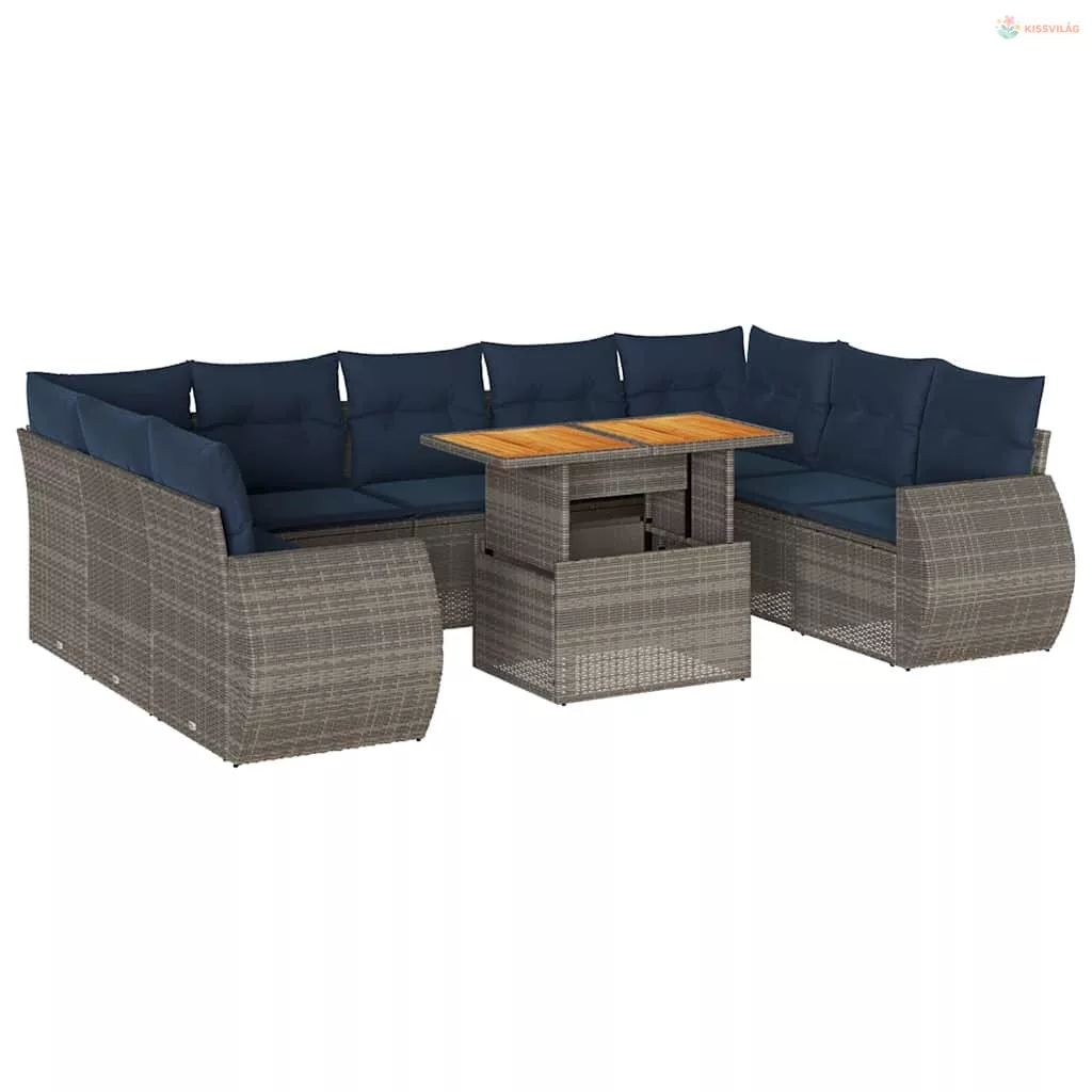 10 részes szürke polyrattan kerti ülőgarnitúra párnákkal