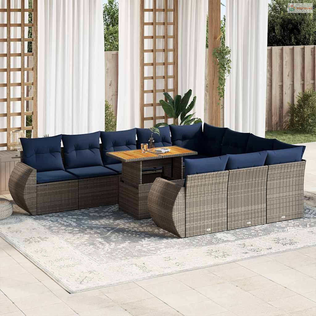 11 részes szürke polyrattan kerti ülőgarnitúra párnákkal
