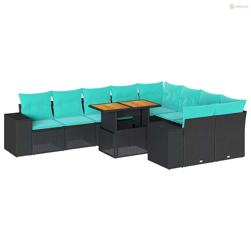 10 részes fekete polyrattan kerti ülőgarnitúra párnákkal