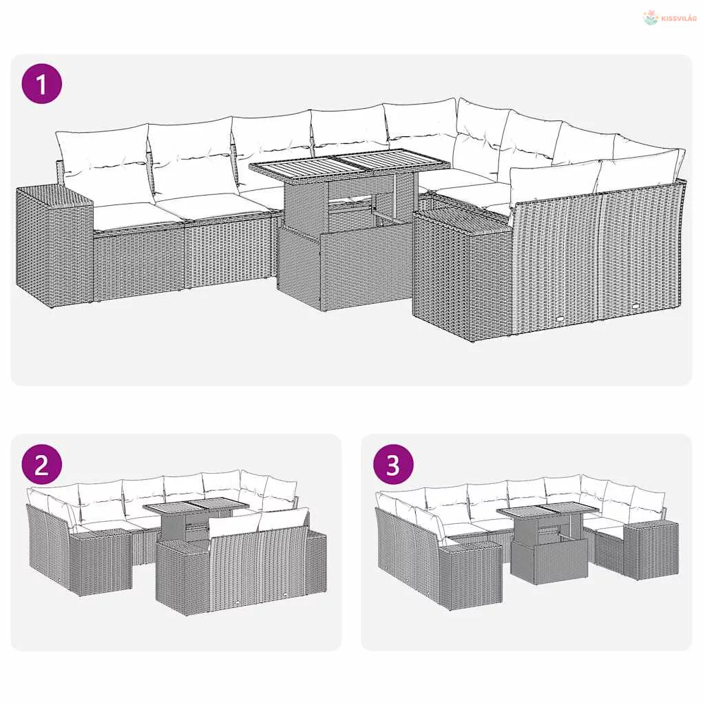 10 részes szürke polyrattan kerti ülőgarnitúra párnákkal