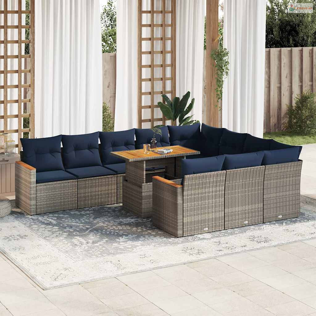 11 részes szürke polyrattan kerti ülőgarnitúra párnákkal