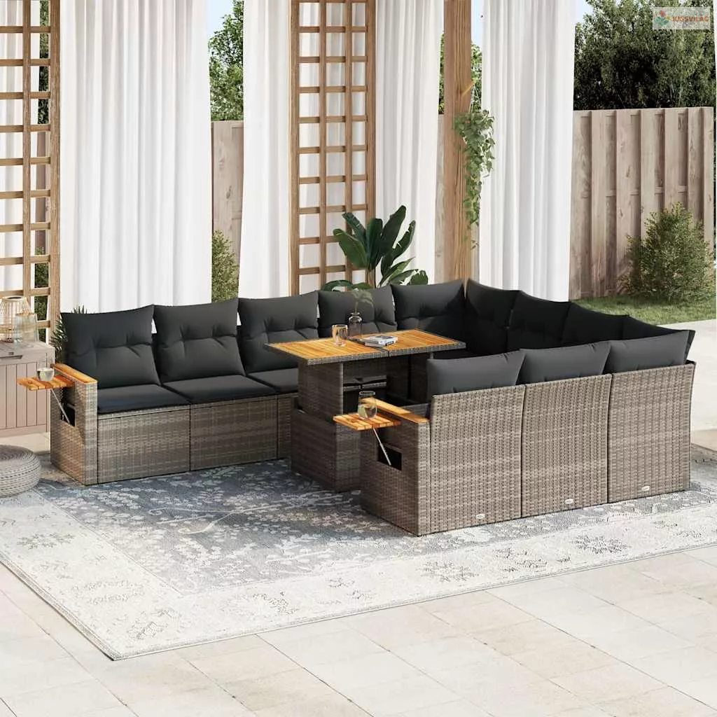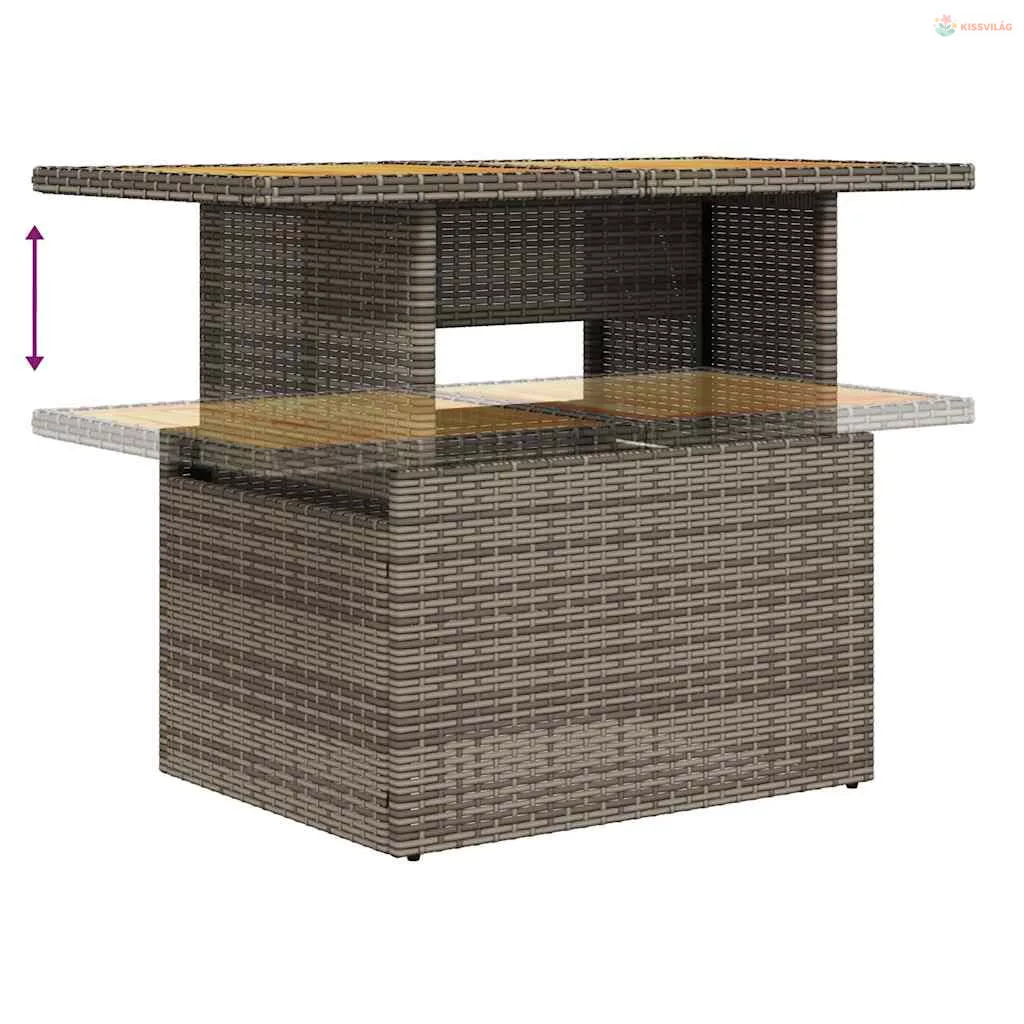11 részes szürke polyrattan akácfa kerti ülőgarnitúra párnákkal