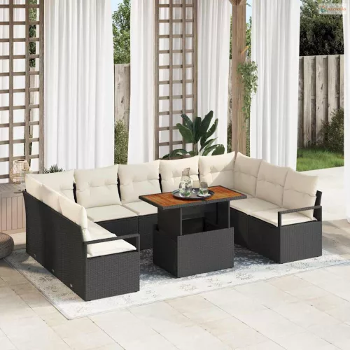 Kerti Kanapé Szett tárolóval 10 pcs Fekete Poli rattan