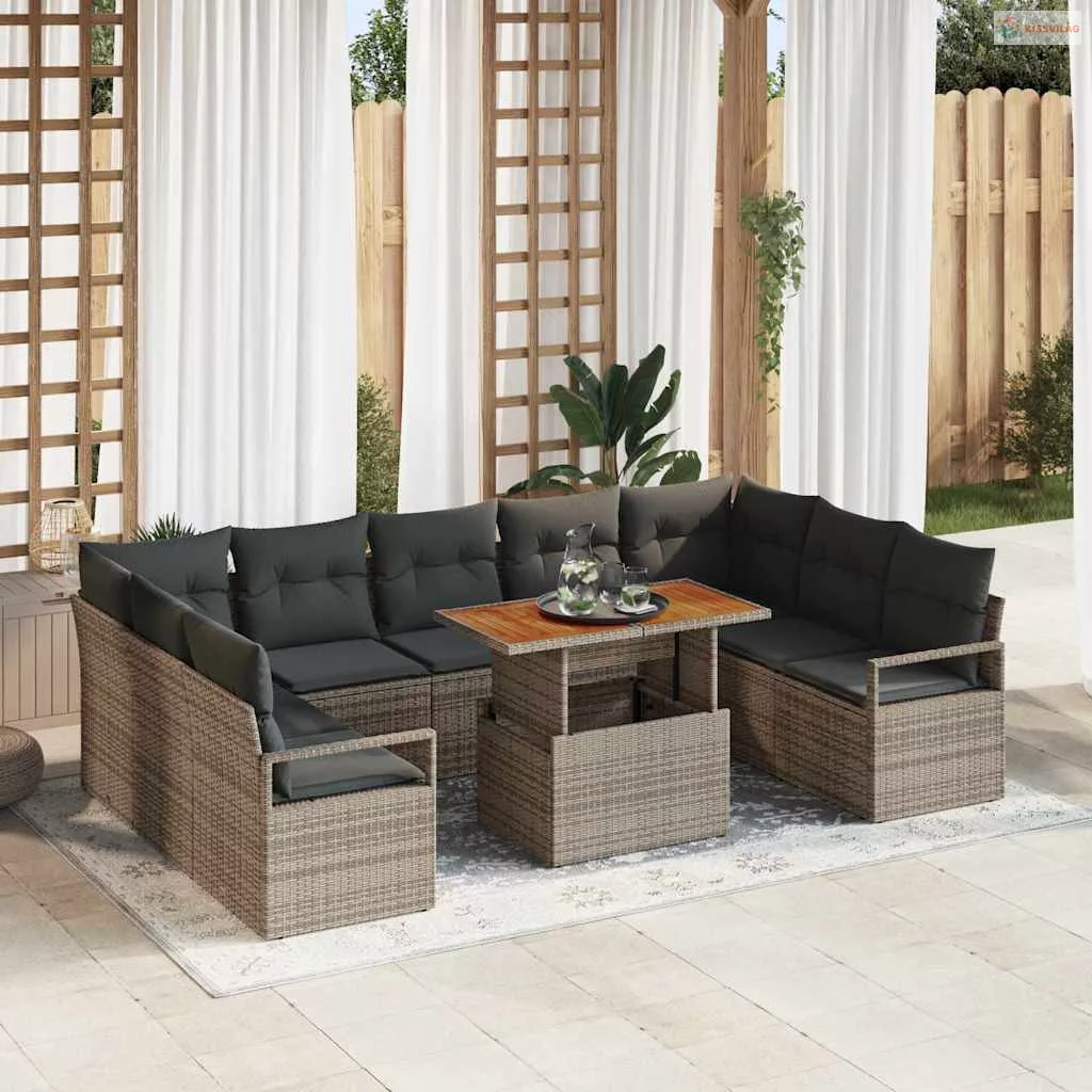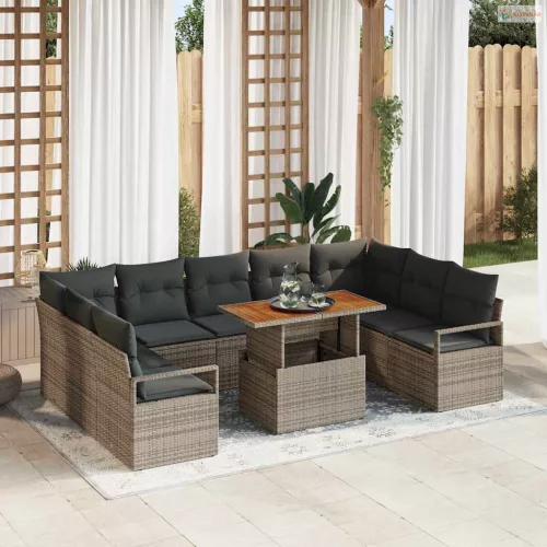 Kerti Kanapé Szett tárolóval 10 pcs Szürke Poli rattan