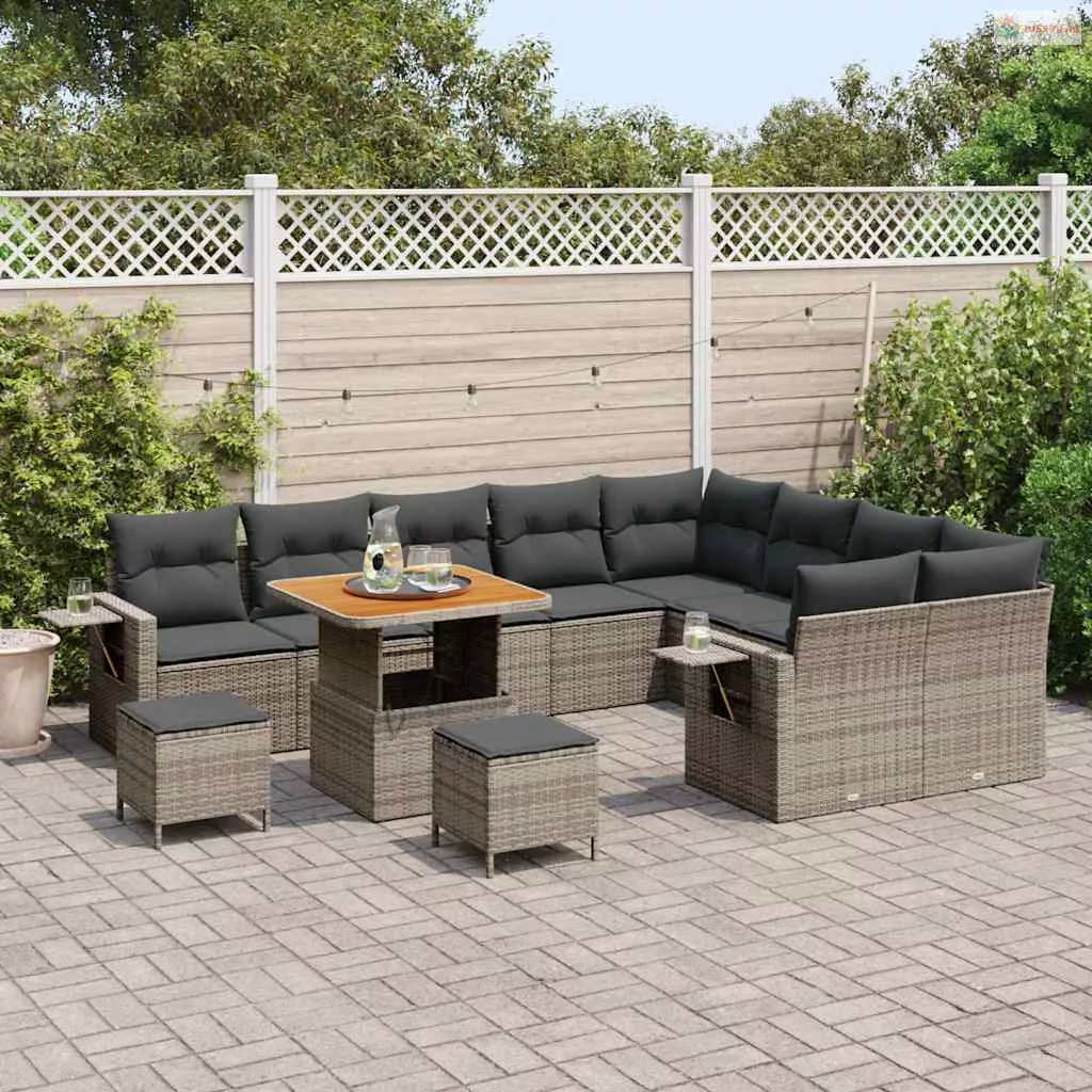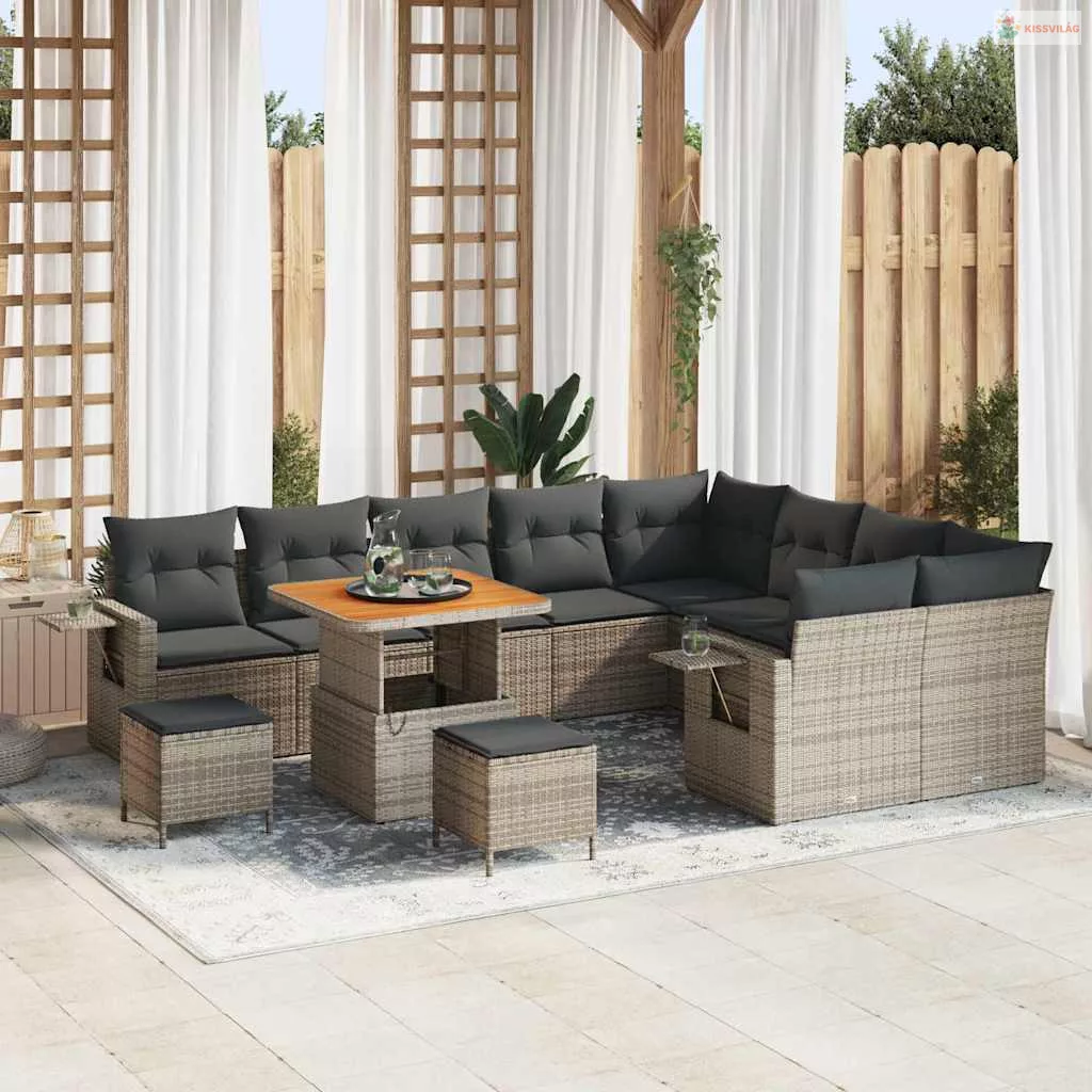 Kerti Kanapé Szett 12 pcs Szürke polirattan