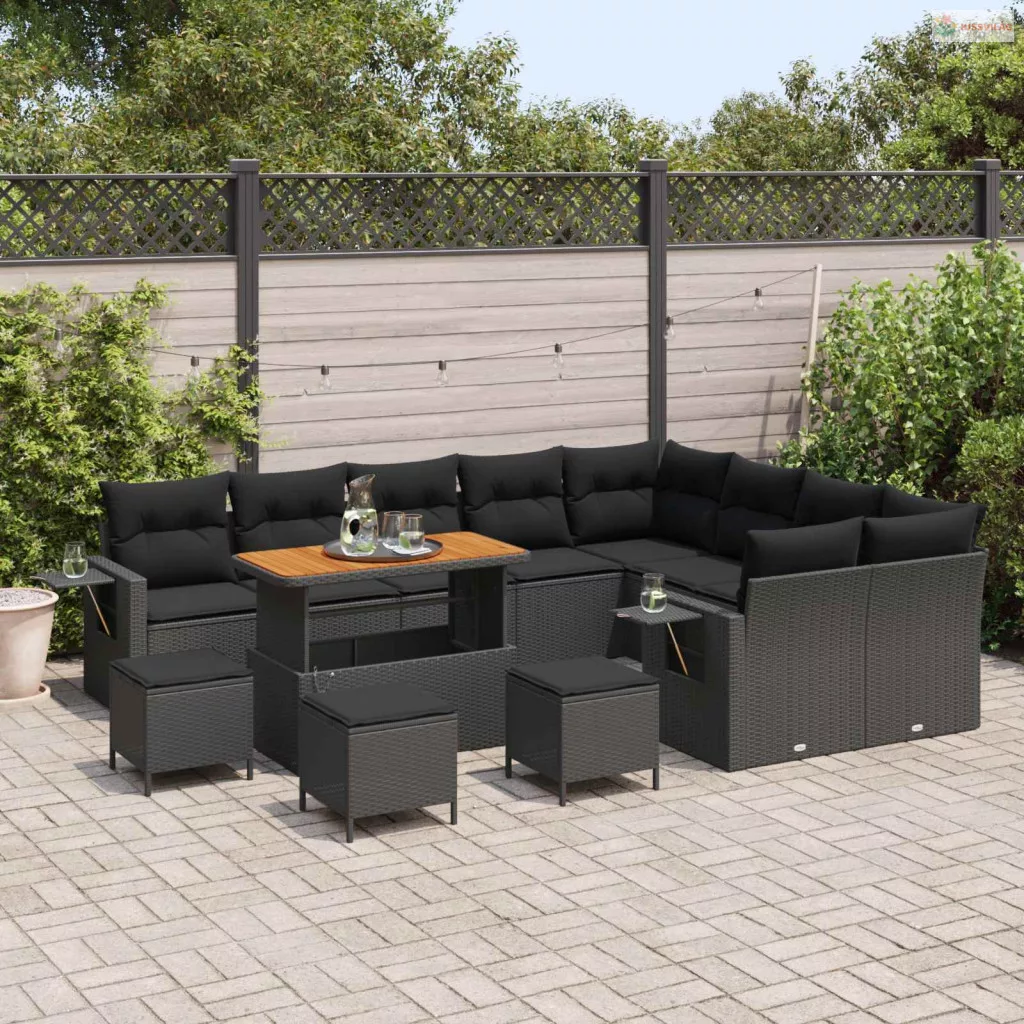 Kerti Kanapé Szett 13 pcs Fekete polirattan