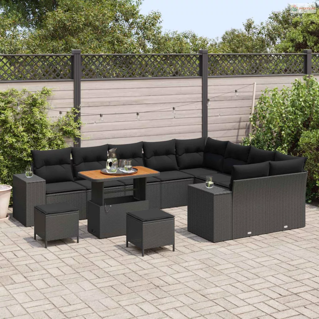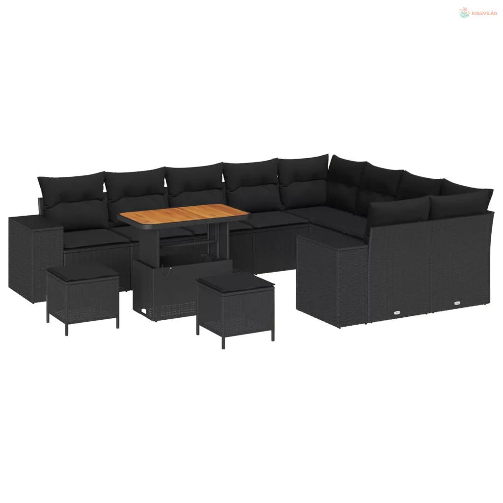Kerti Kanapé Szett párnával 12 pcs Fekete polirattan